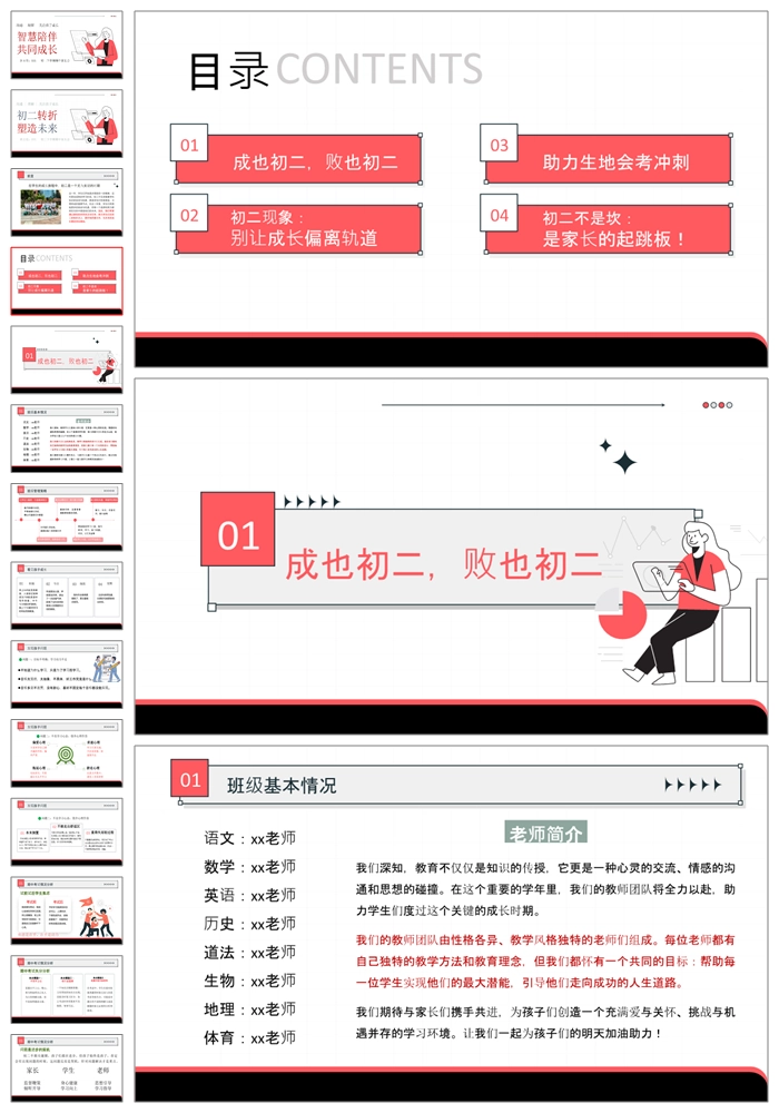 【8099】【初二家长会】《智慧陪伴共同成长》初二下学期期中家长会PPT课件
