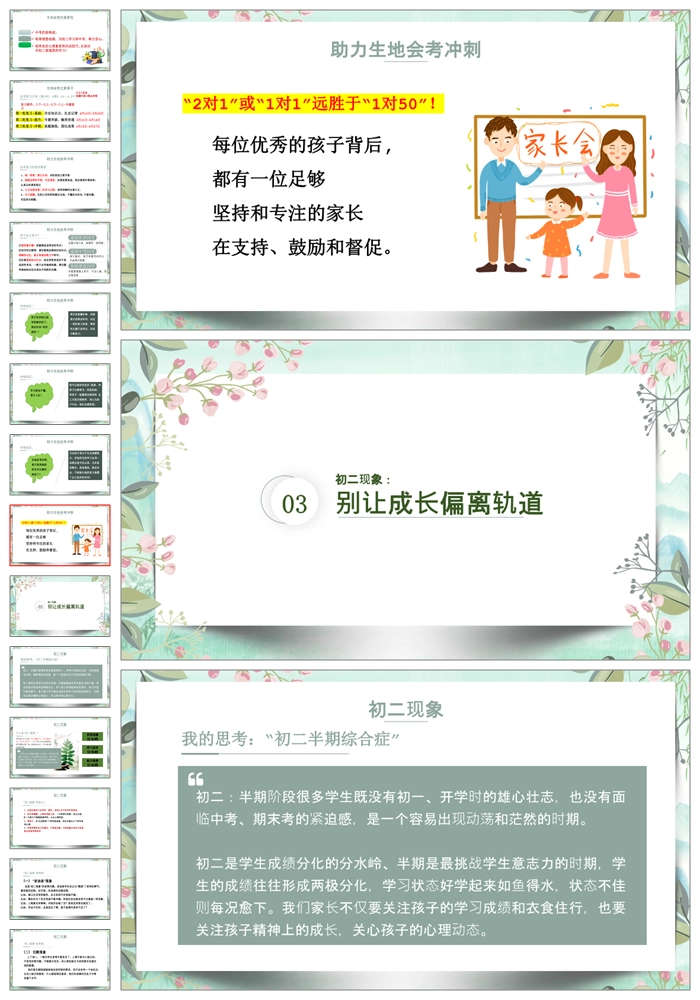 【8132】【初二家长会】《智慧陪伴共同成长》初二下学期期中家长会PPT课件助力生地会考冲刺(课件+讲稿)