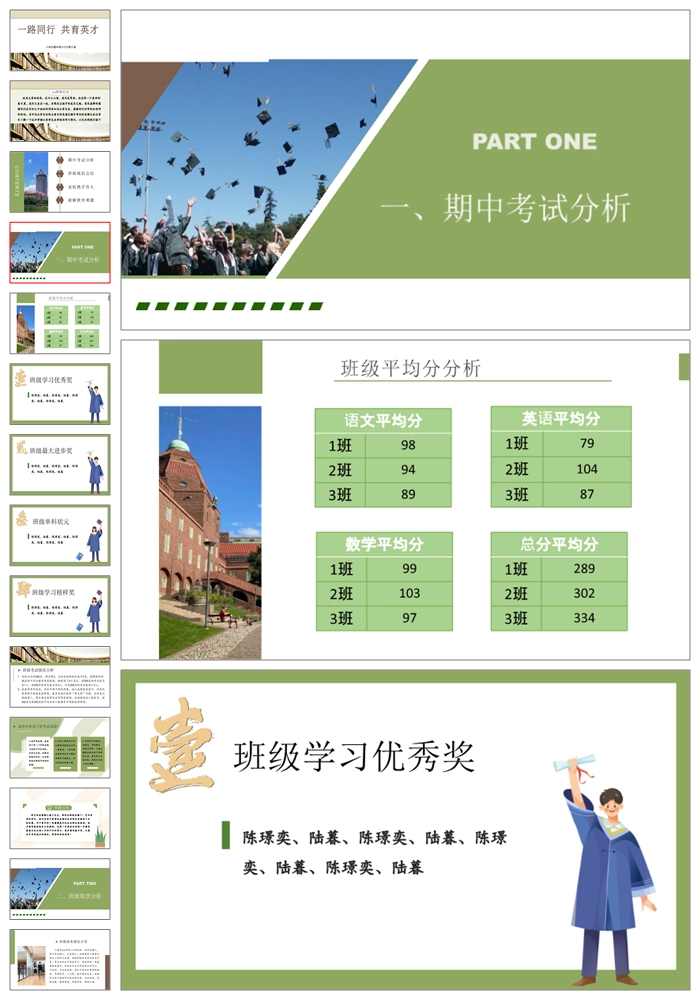 【8151】【初二家长会】《一路同行共育英才》八年级期中考试总结家长会PPT(课件+讲话稿)