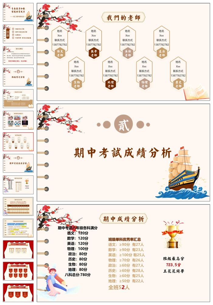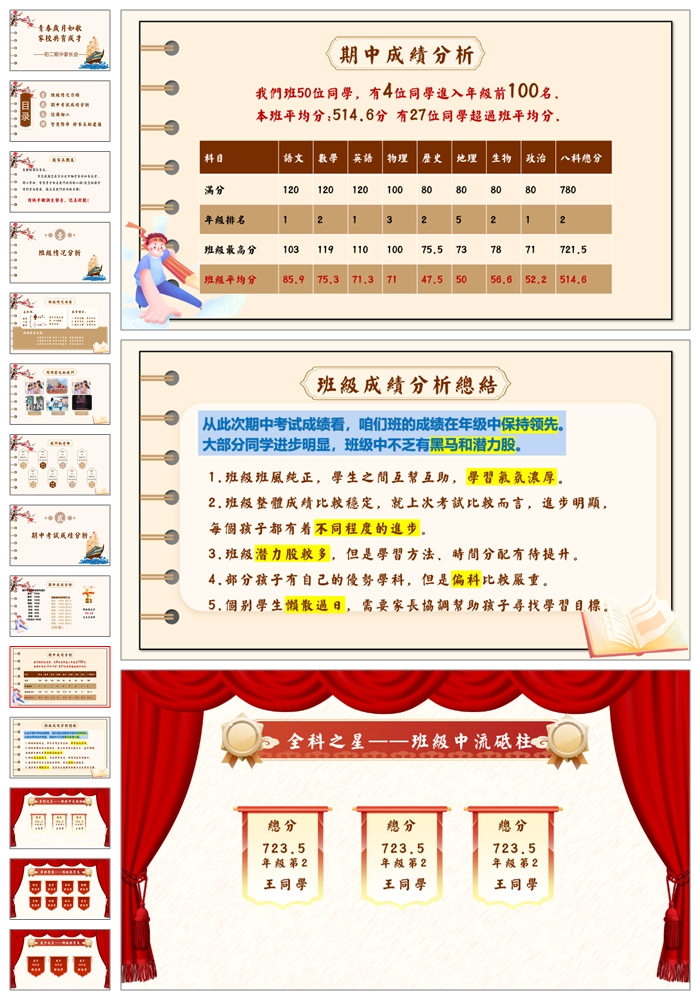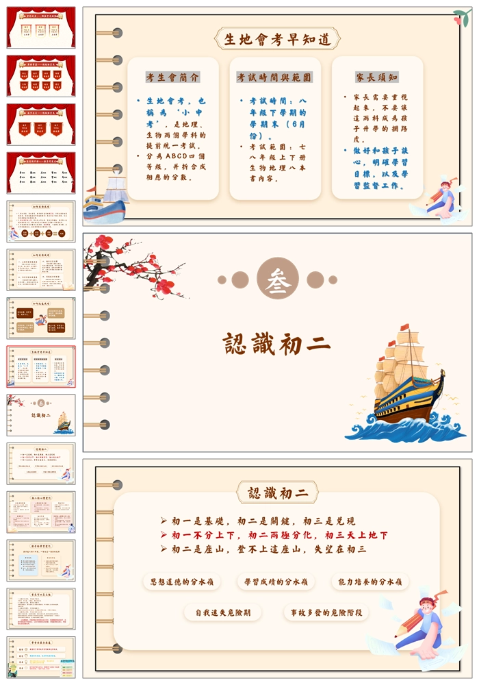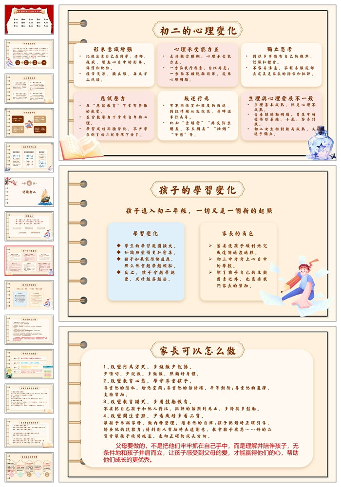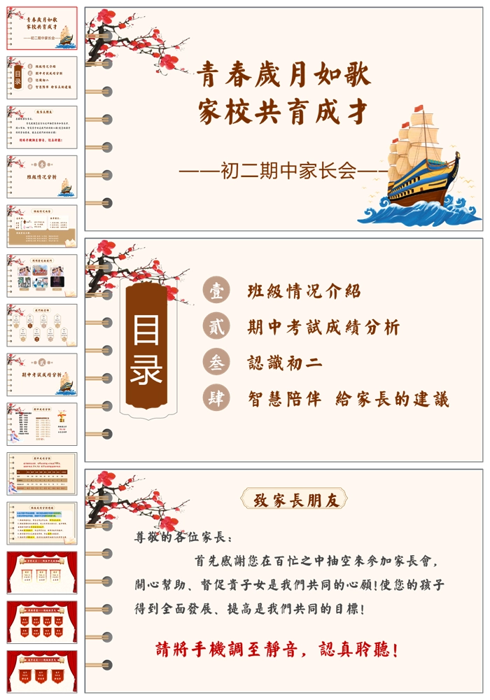 【8186】【初二家长会】《青春岁月如歌家校共育成才》初二期中家长会PPT(课件+讲稿)