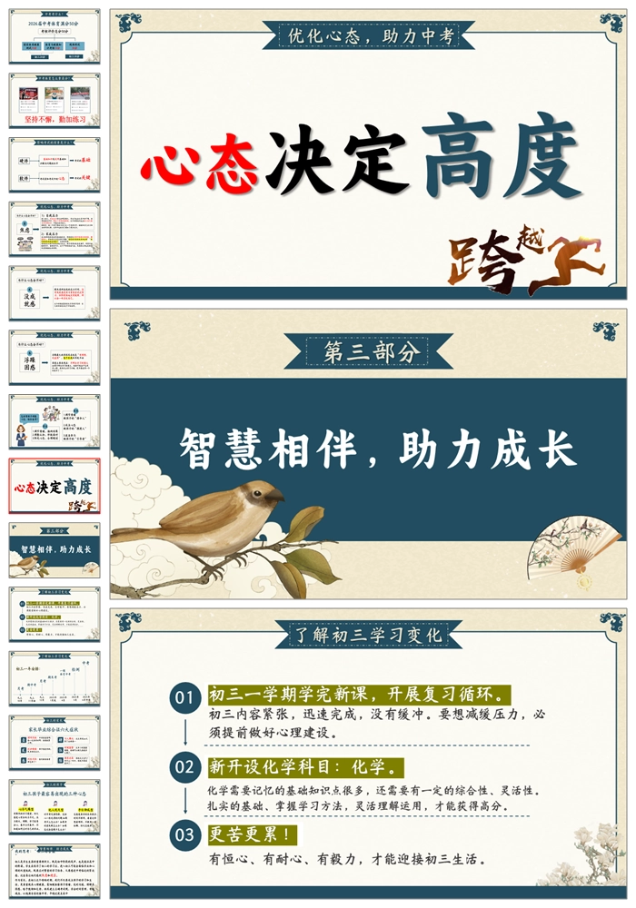 【5104】初三家长会《期中蓄力中考腾飞》初三上学期期中家长会ppt课件+发言稿