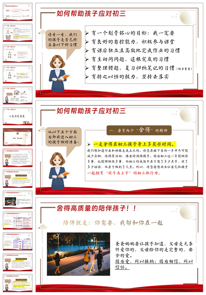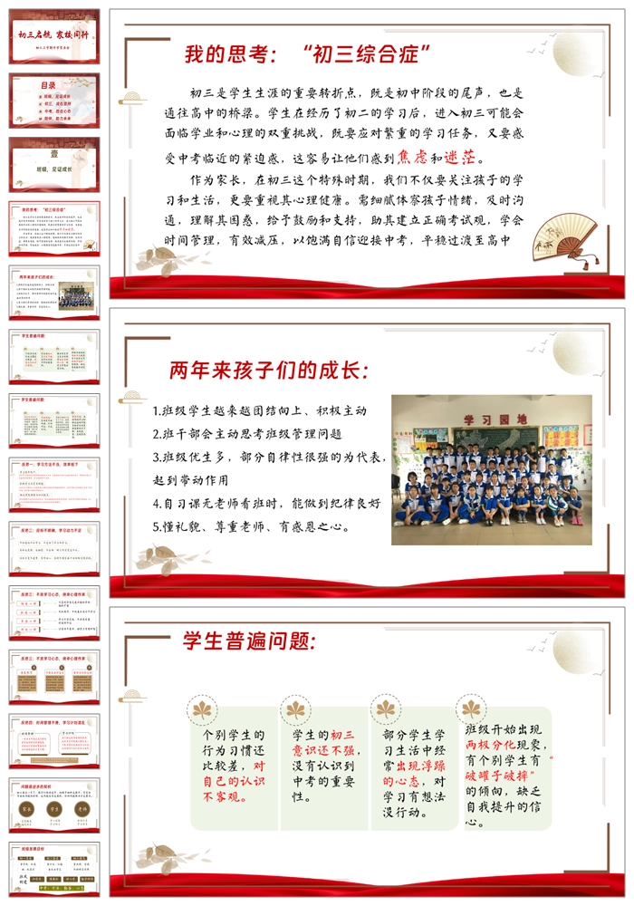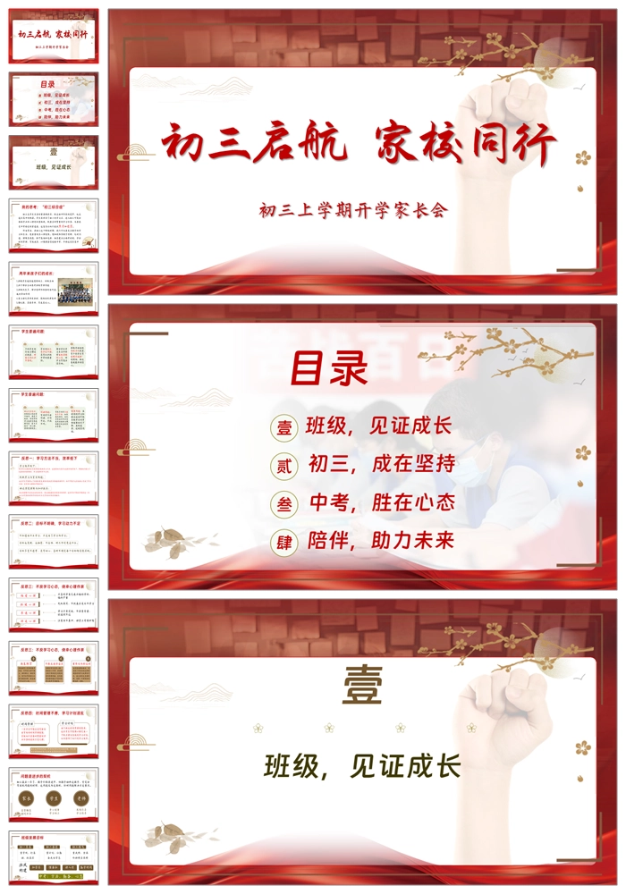 【8296】【初三家长会】《初三启航家校同行》初三上学期开学家长会PPT(课件+逐字稿)