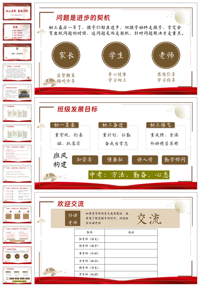 首页 初三家长会 【8296】【初三家长会】《初三启航家校同行》初三上学期开学家长会PPT(课件+逐字稿)