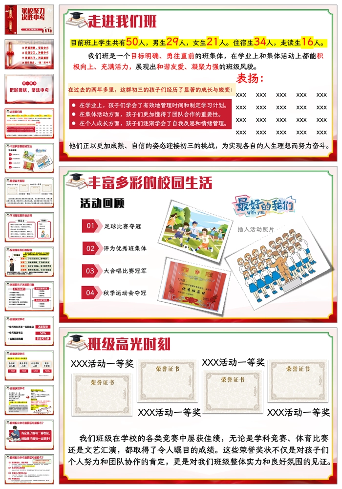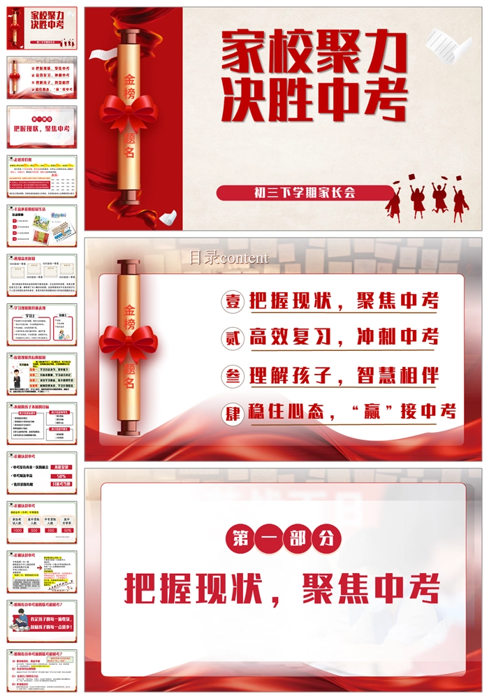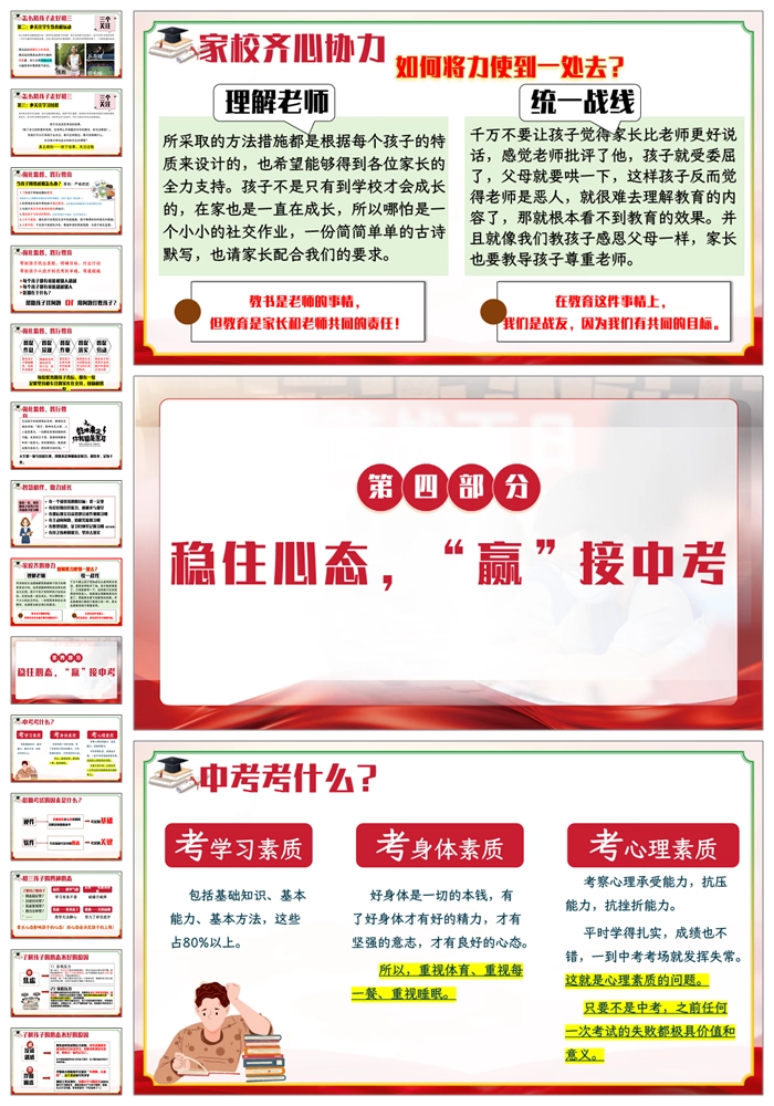 【8339】【初三家长会】《家校聚力决胜中考》初三下学期家长会PPT(课件+发言稿)