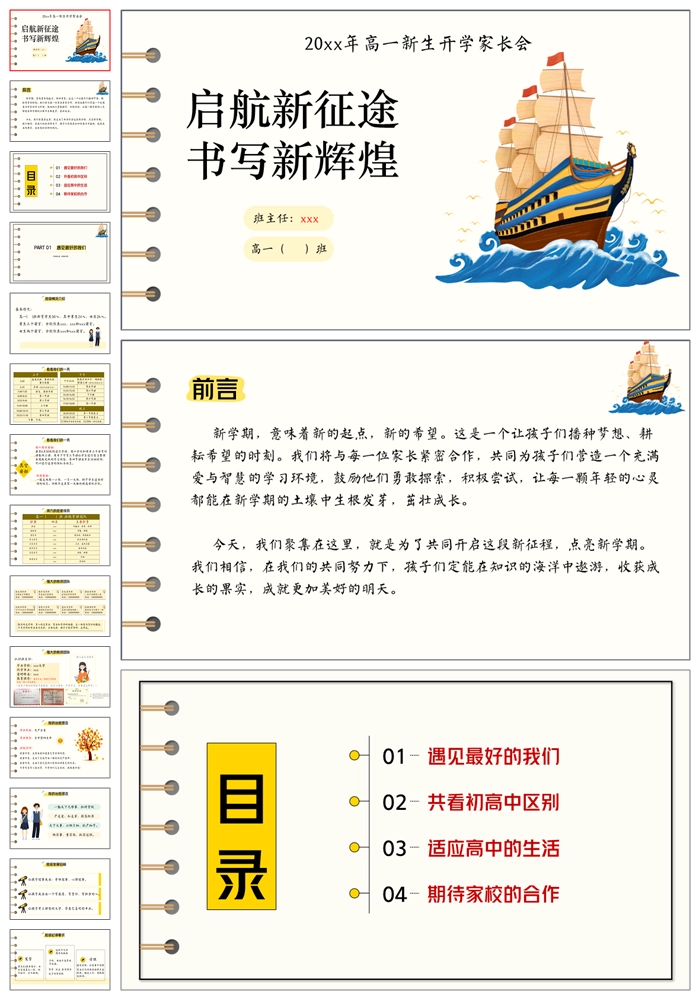 【8190】【高一家长会】《启航新征途 书写新辉煌》高一上学期开学家长会PPT(课件+讲稿)