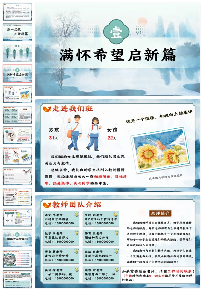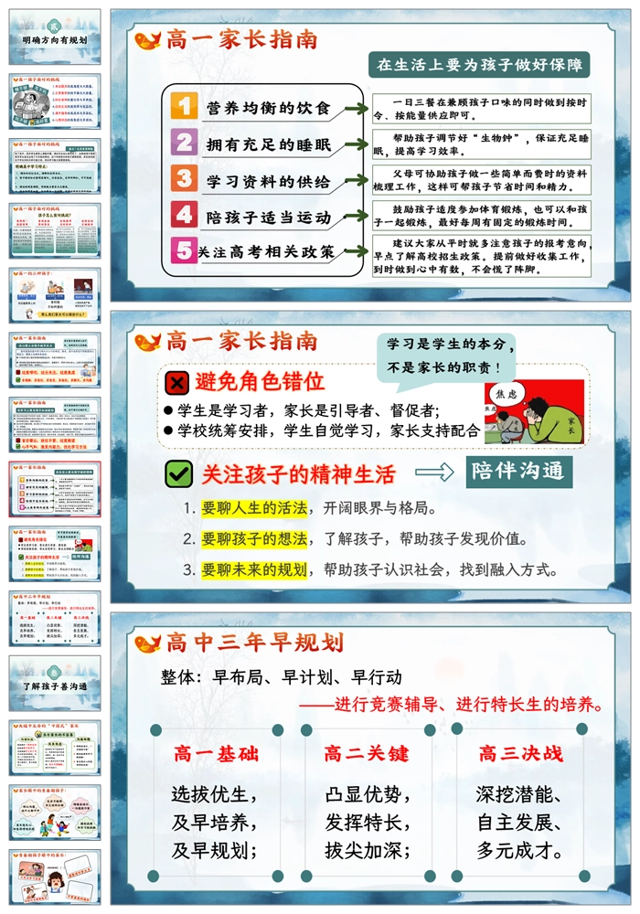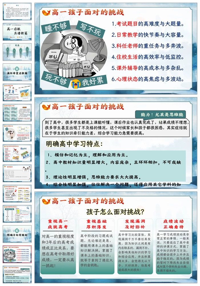 【8546】高一开学家长会《高一启航共谱新篇》高一上学期开学家长会ppt课件+发言稿