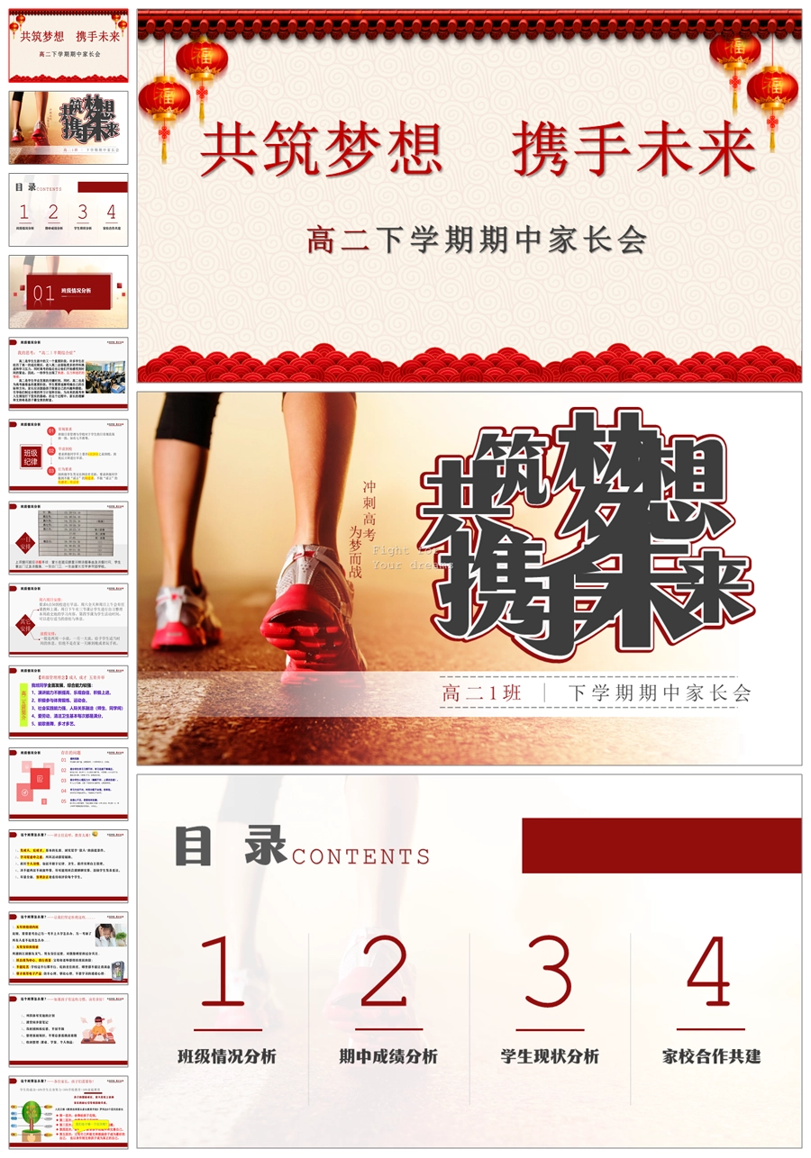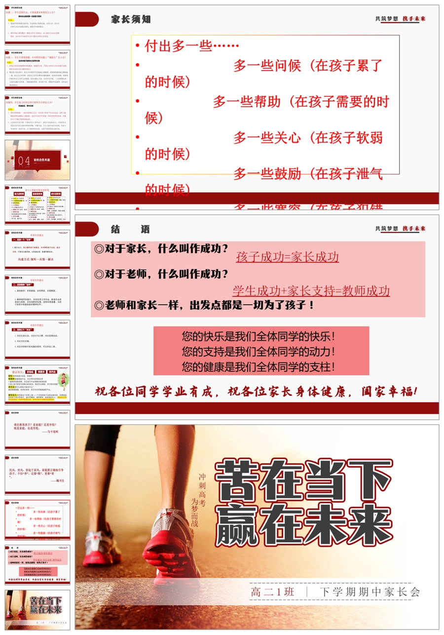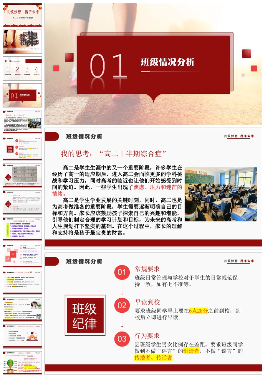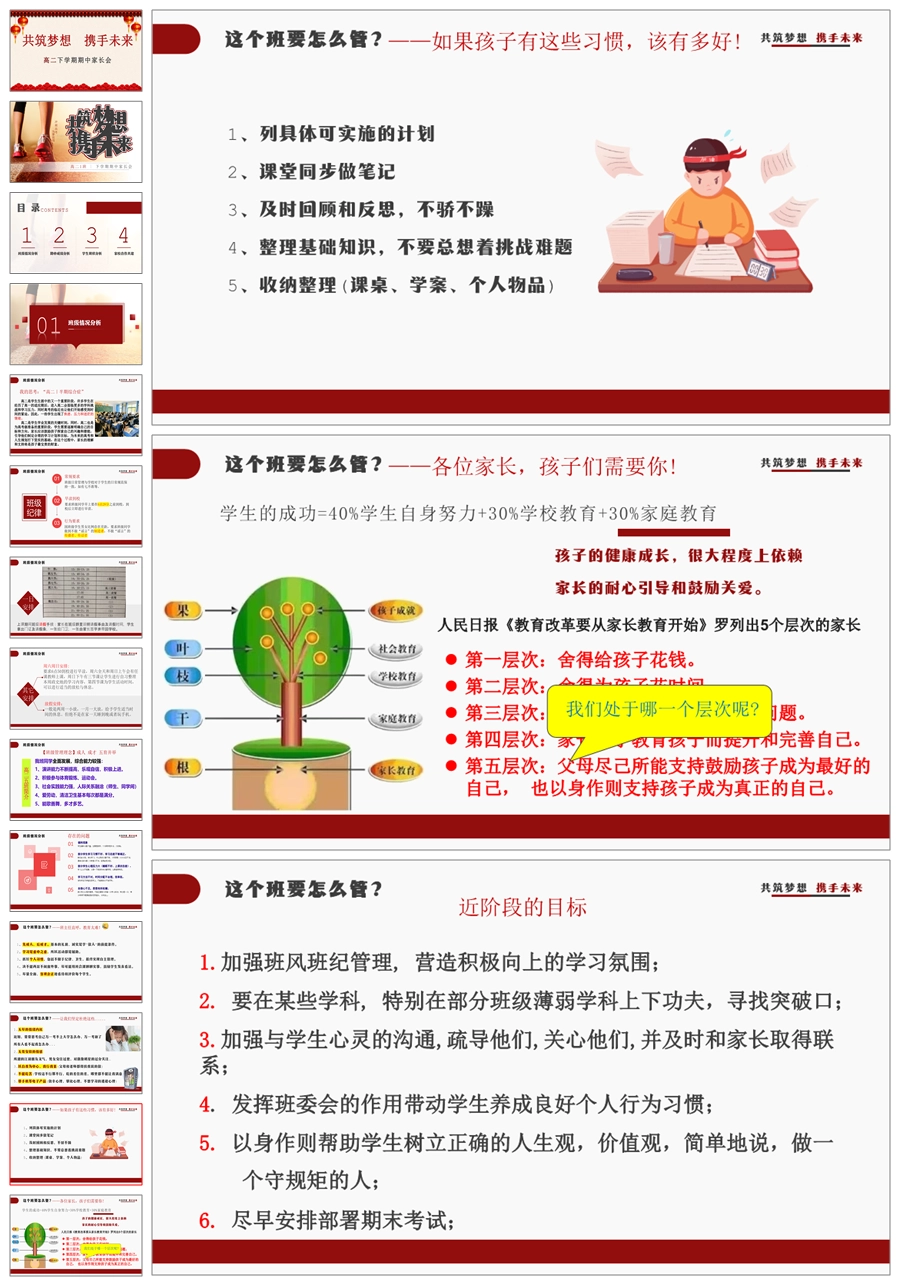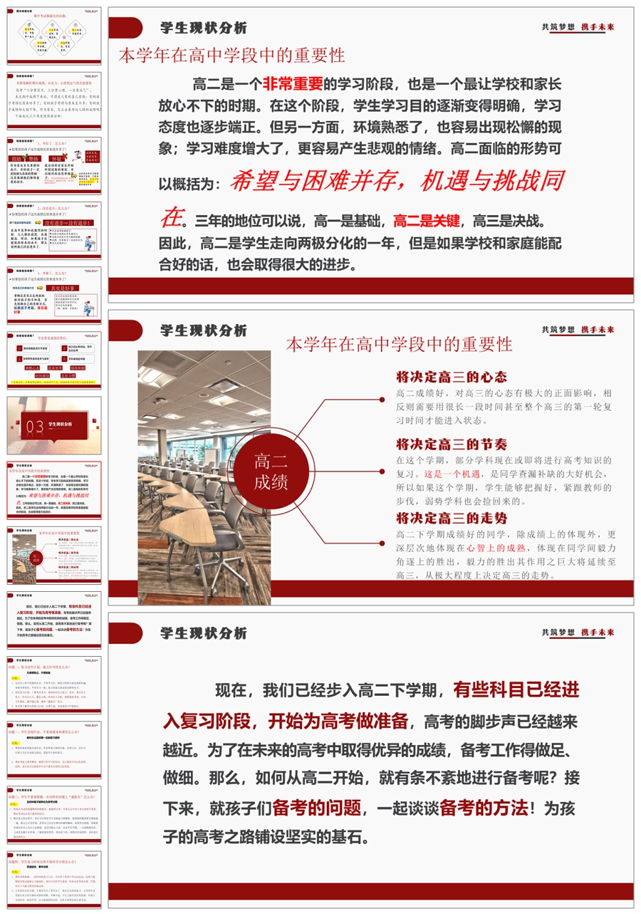 【8138】【高二家长会】《共筑梦想携手未来》高二下学期期中家长会PPT课件+讲话稿