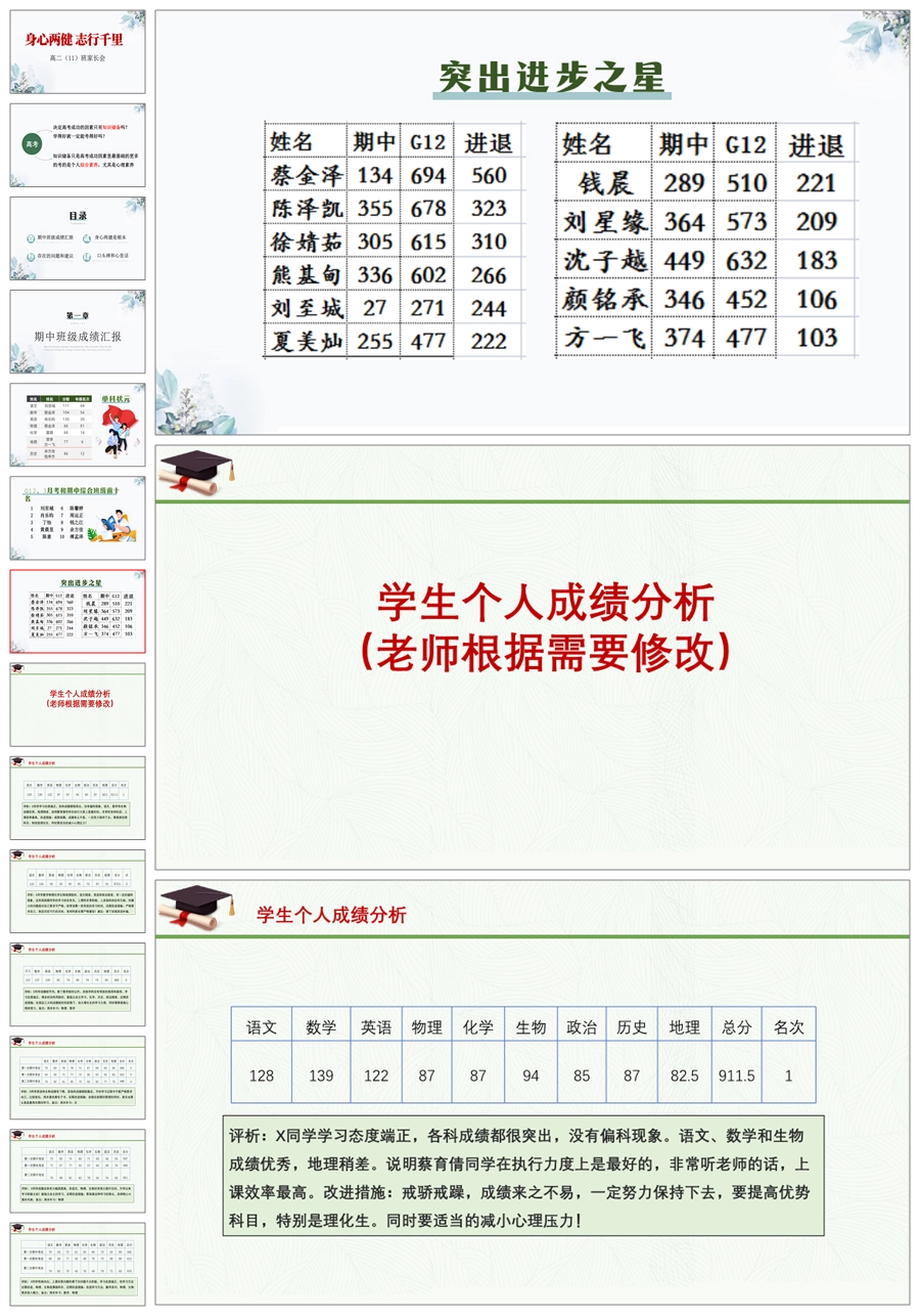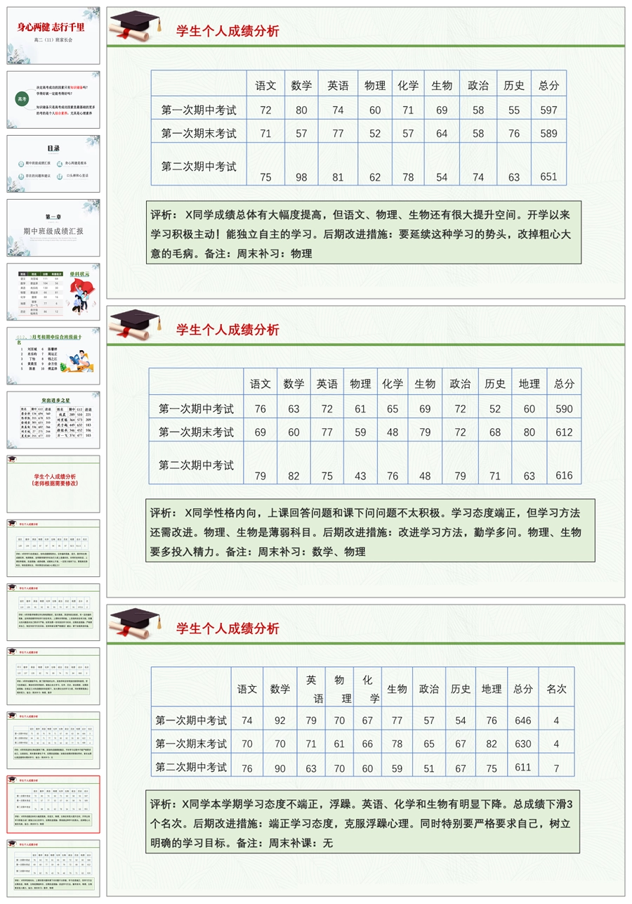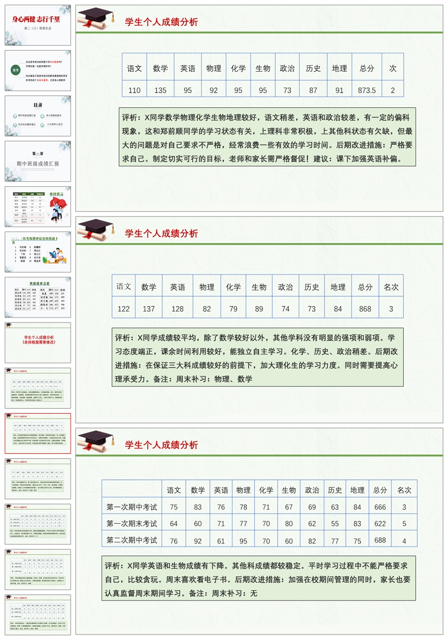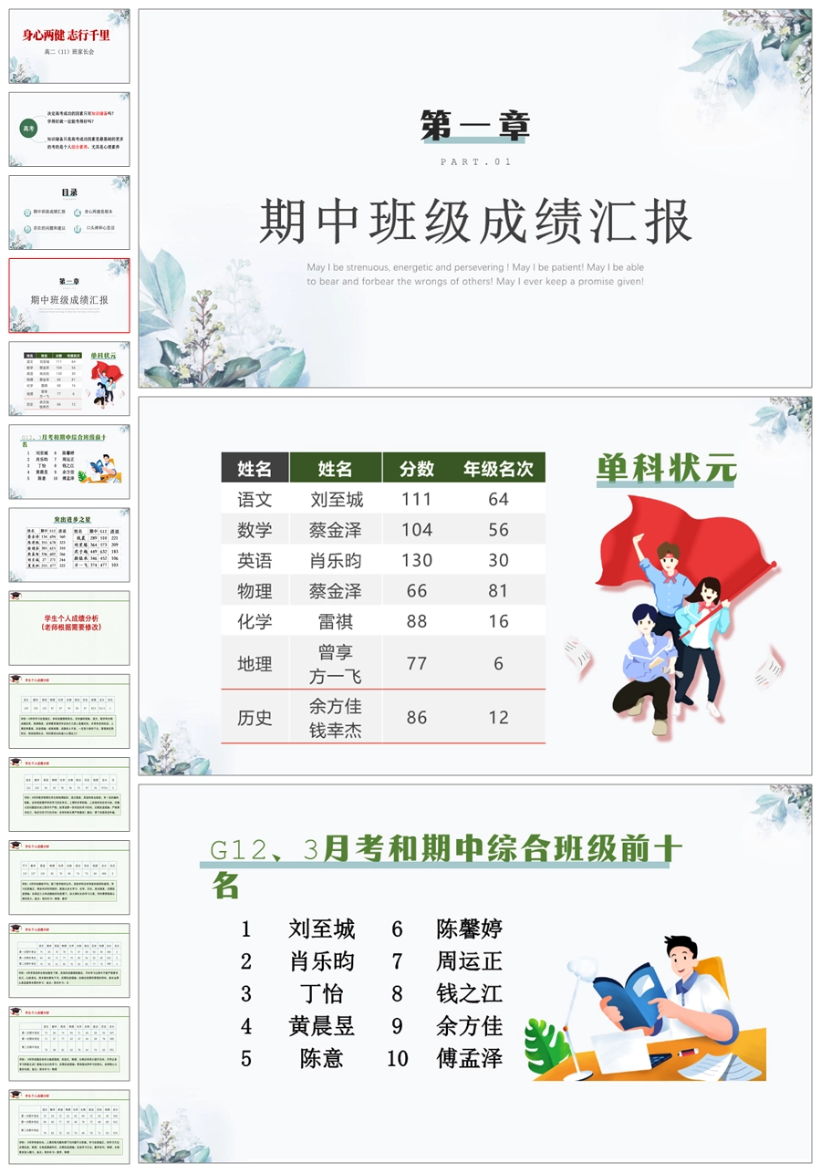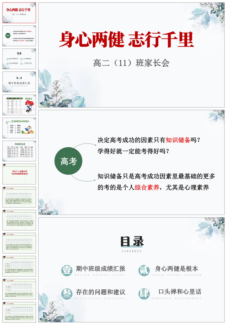 【8148】【高二家长会】《身心两健 志行千里》高二期中考试成绩分析家长会PPT(共50张PPT)