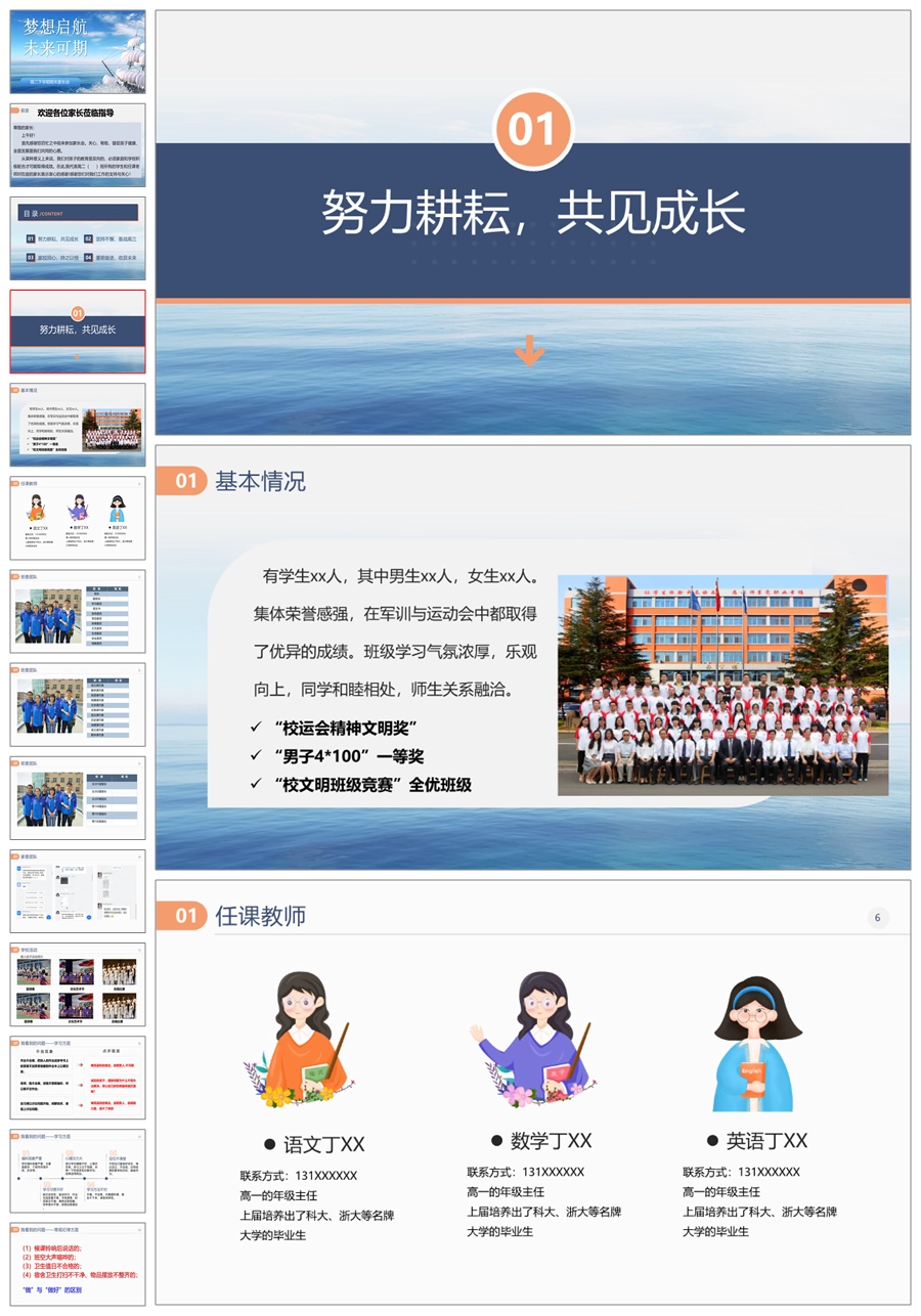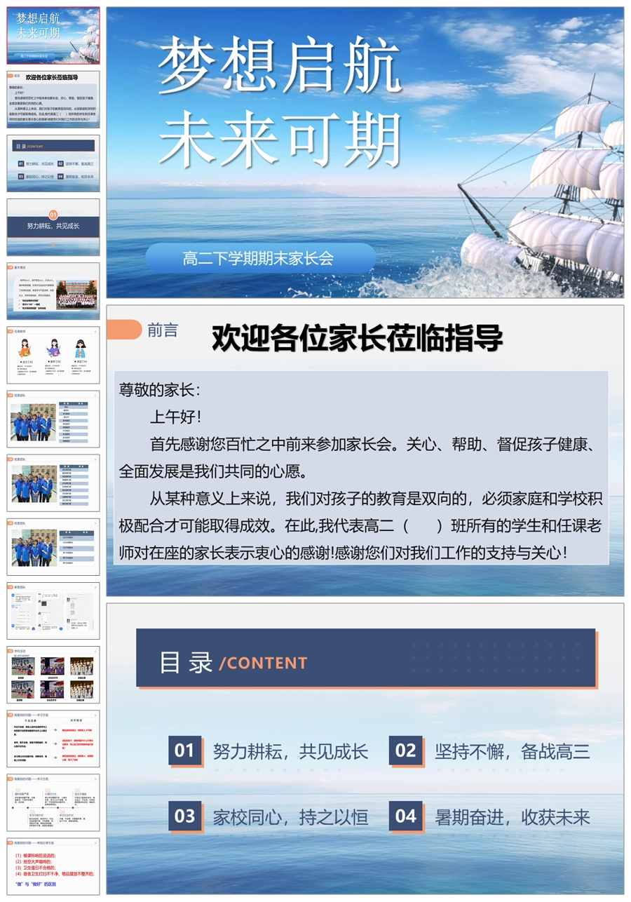 【8205】【高二家长会】《梦想启航未来可期》高二下学期期末家长会PPT(课件+讲稿)