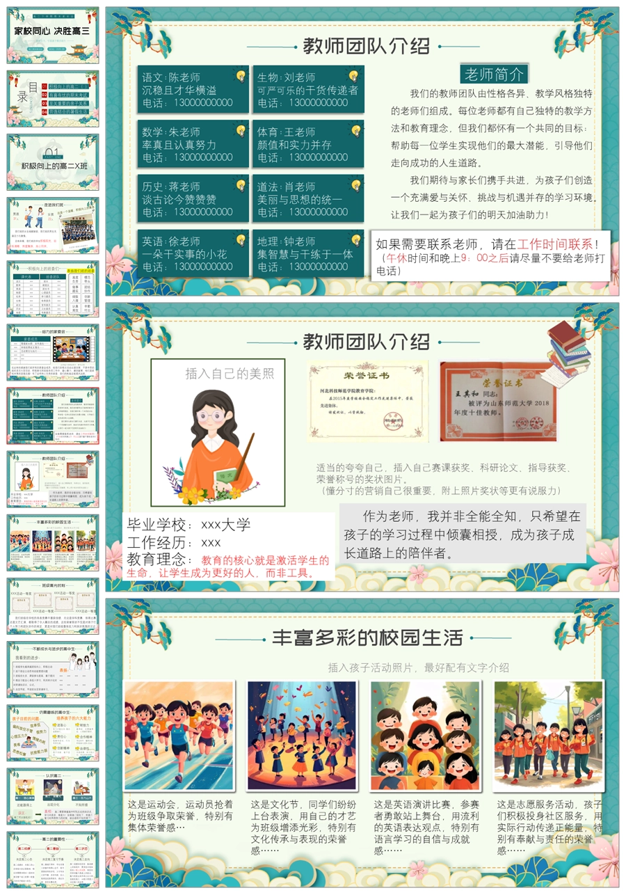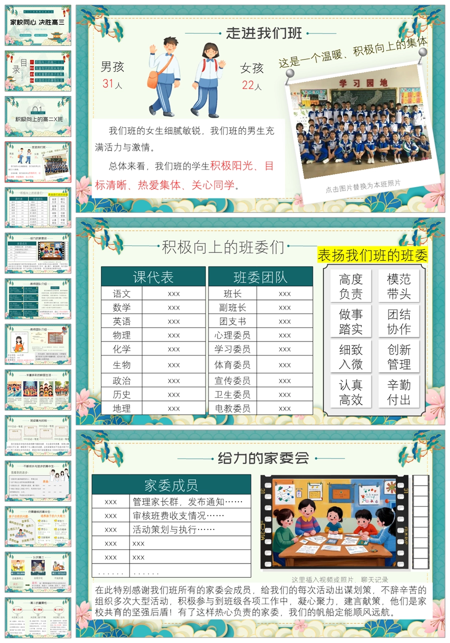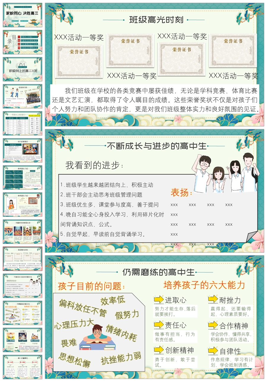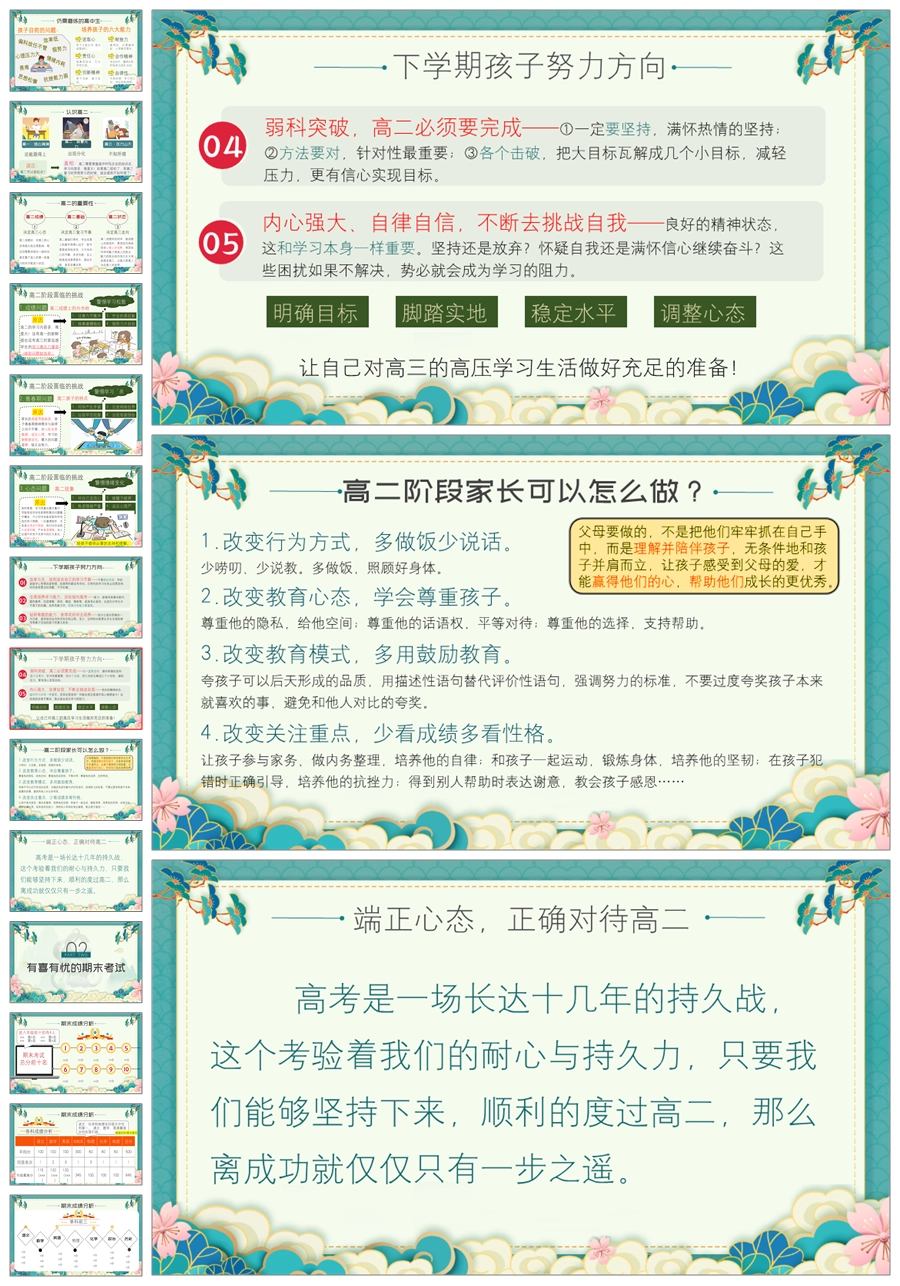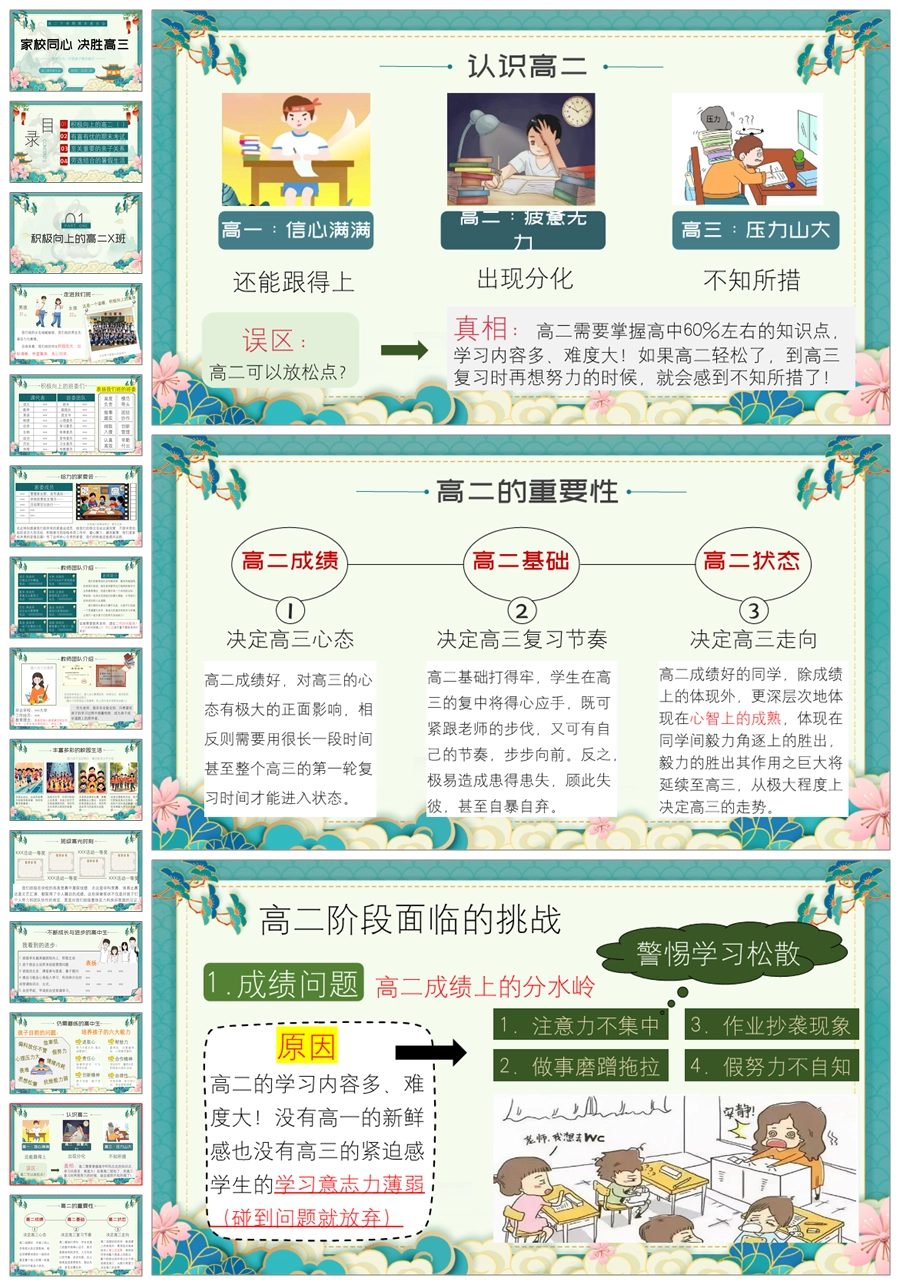 【8392】【高二家长会】《家校同心决胜高三》高二第二学期期末家长会ppt(课件+发言稿)