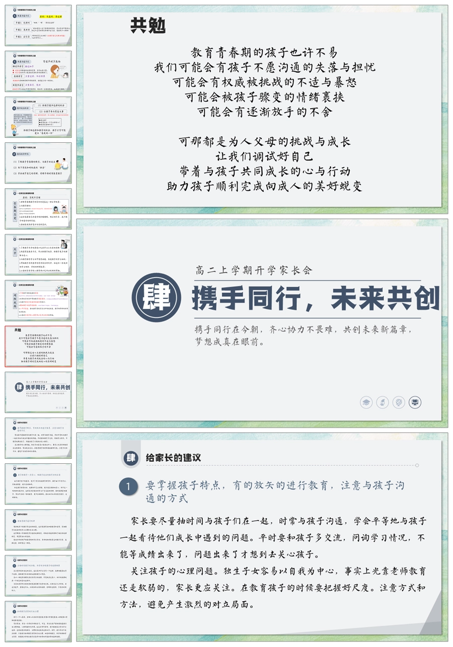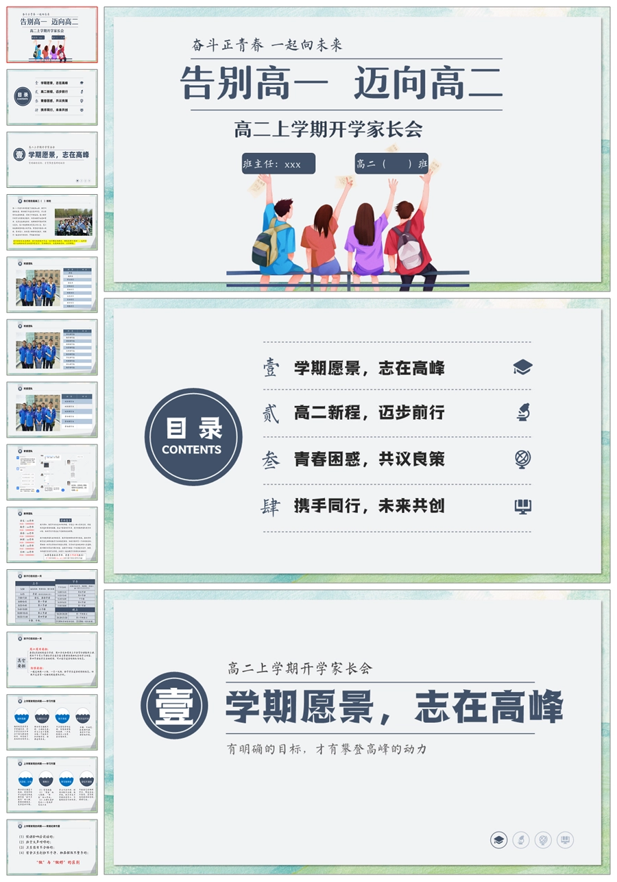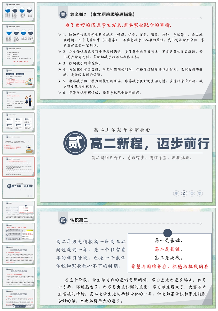 【8463】【高二家长会】高二上学期开学家长会《告别高一 迈向高二》PPT课件+发言稿