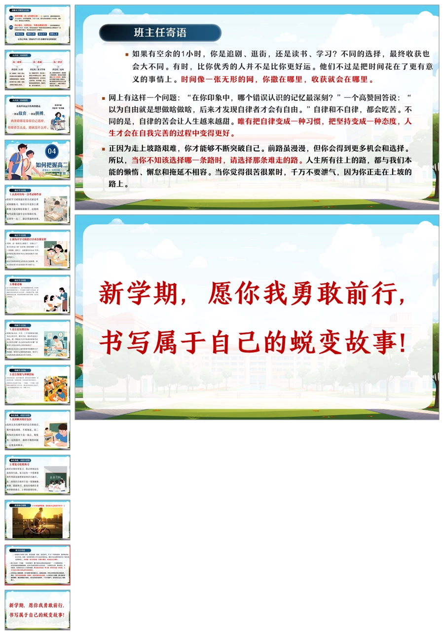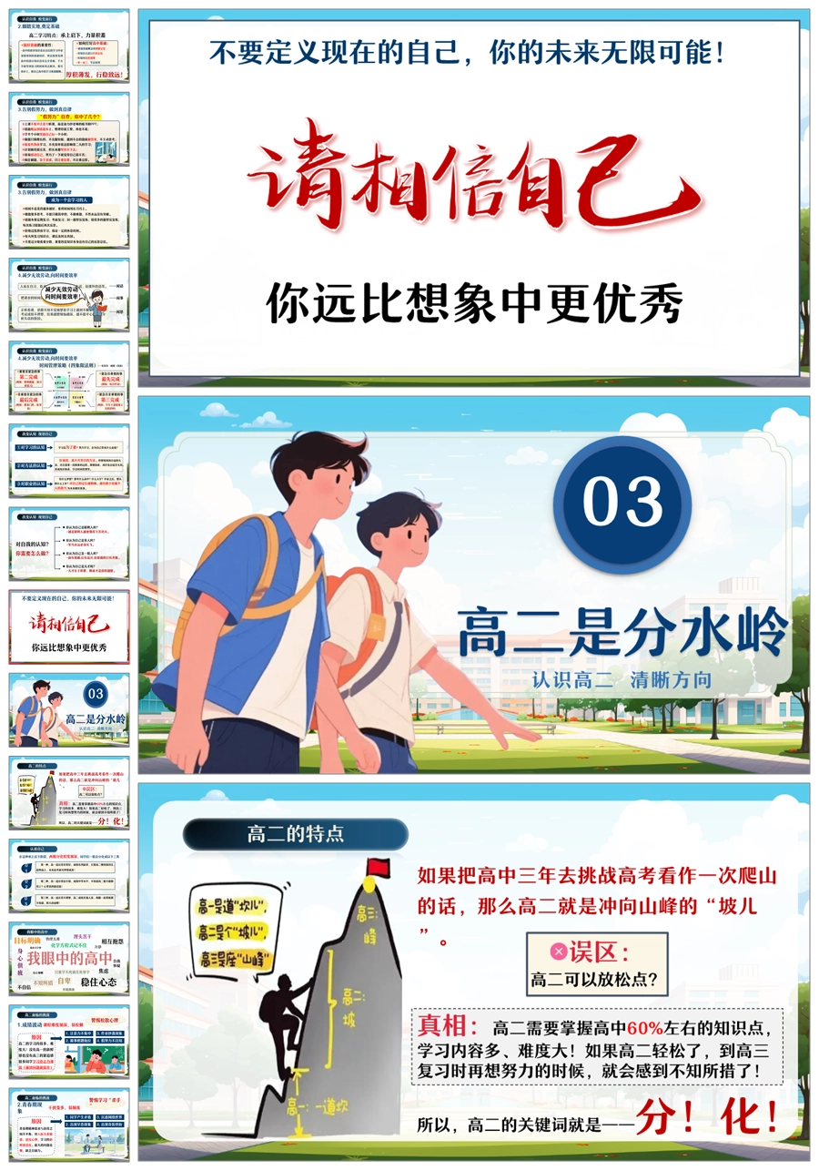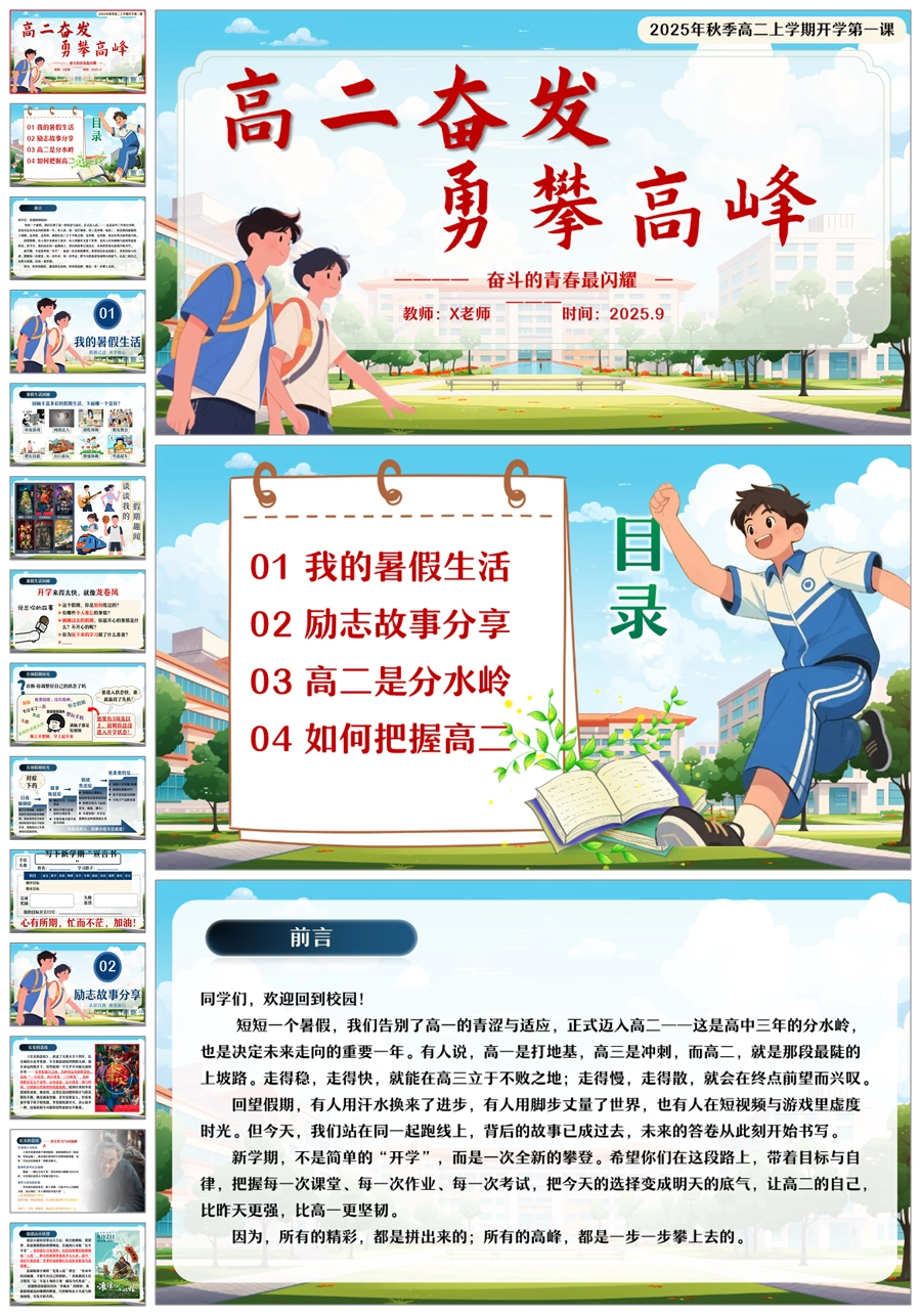 【8525】高二上学期开学第一课《高二奋发 勇攀高峰》高二开学第一课ppt课件+教案+视频