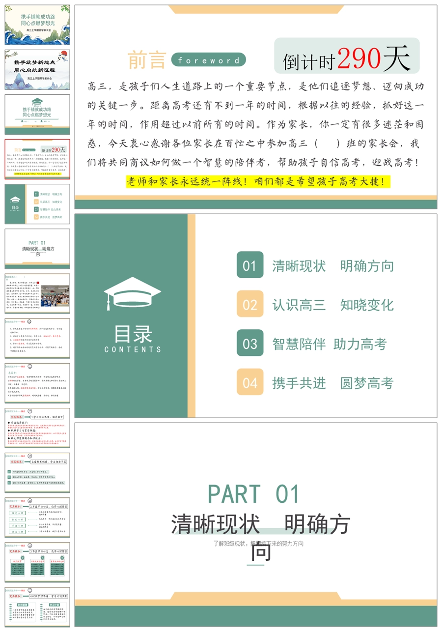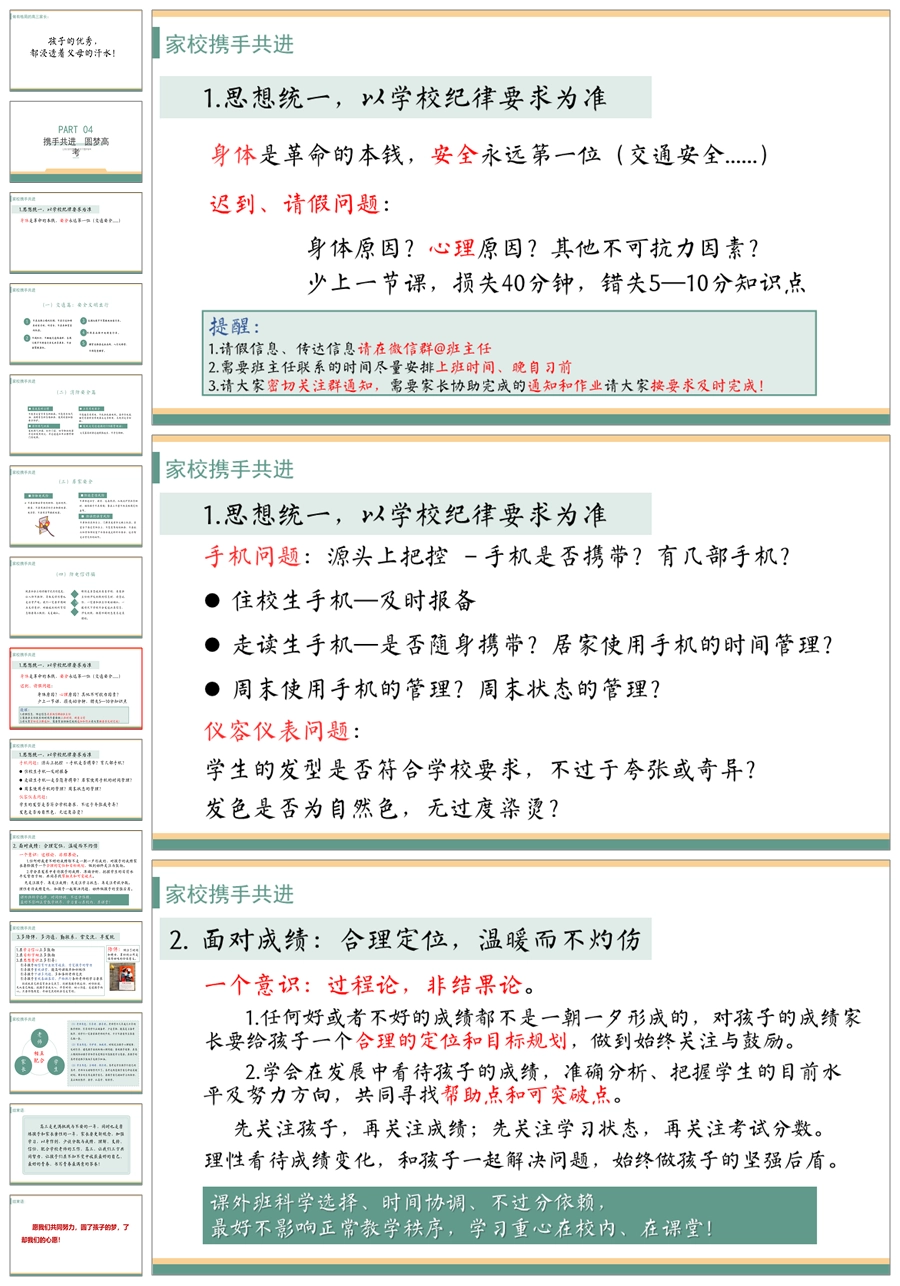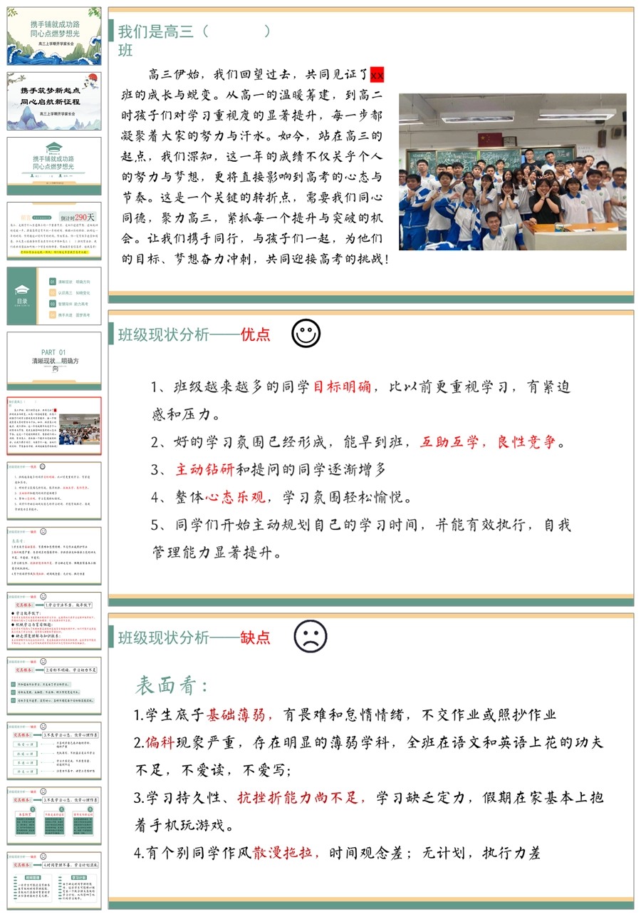 【8112】【高三家长会】《携手筑梦新起点同心启航新征程》高三上学期开学家长会PPT(课件+讲稿)