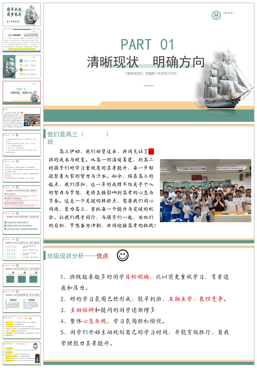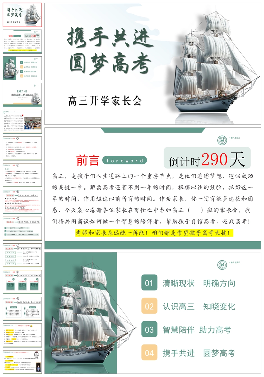 【8371】【高三家长会】《携手共进圆梦高考》高三上学期开学家长会PPT(课件+发言稿)