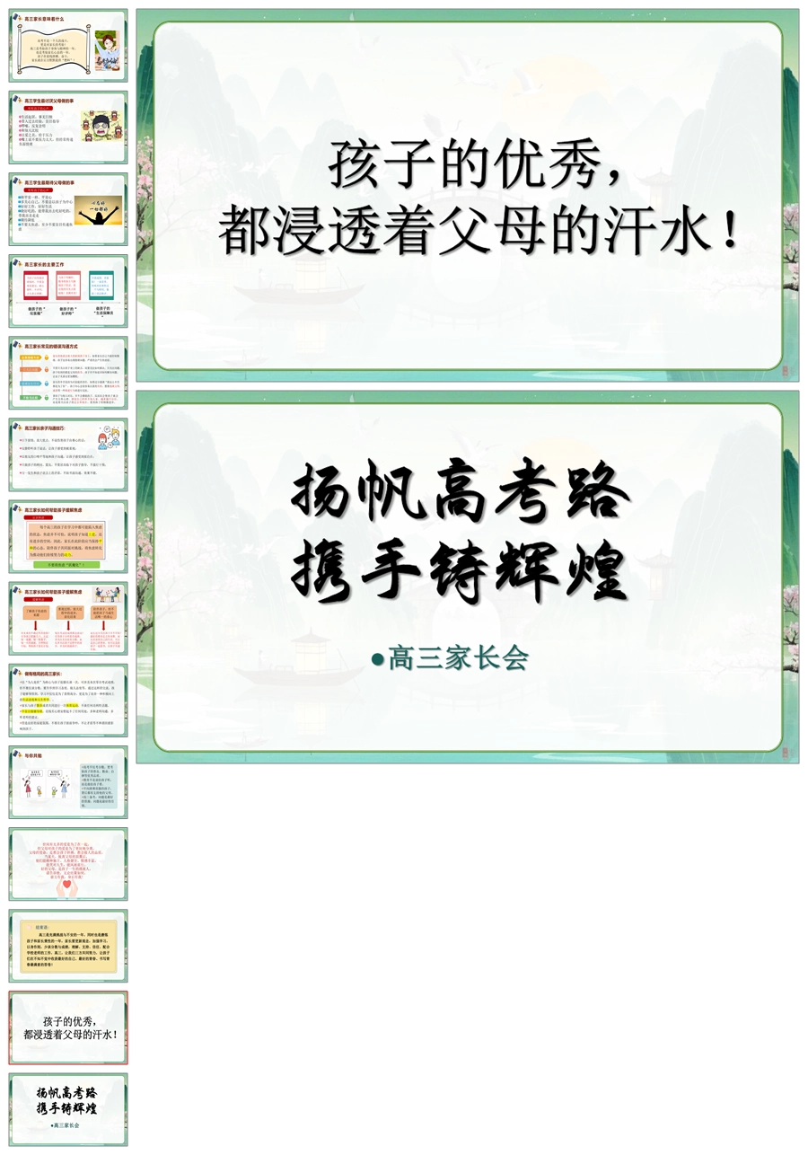 【8372】【高三家长会】《扬帆高考路携手铸辉煌》新高三开学家长会PPT(课件+发言稿)