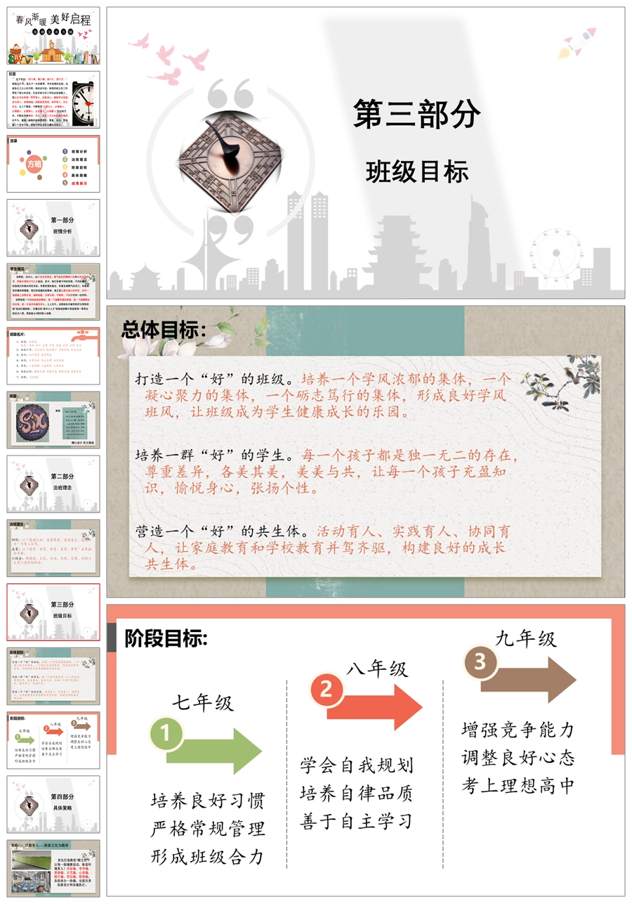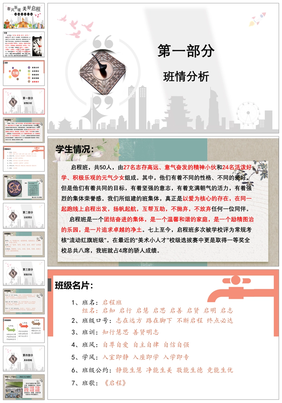 【8165】【治班方略】《让美好启程》班级育人方略班主任经验交流PPT(课件+讲话稿)
