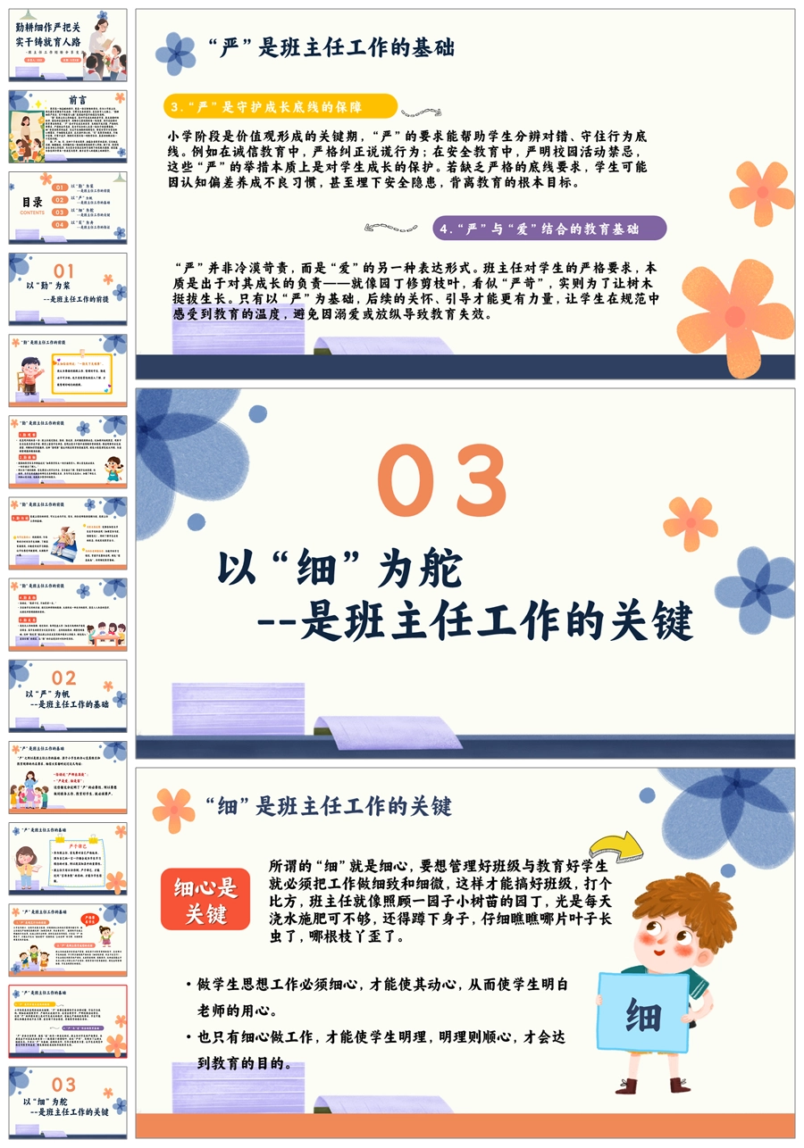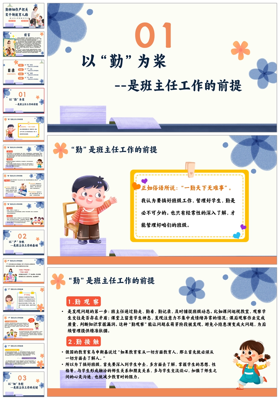 【8601】《勤耕细作严把关,实干铸就育人路》小学班主任工作经验分享ppt课件+发言稿