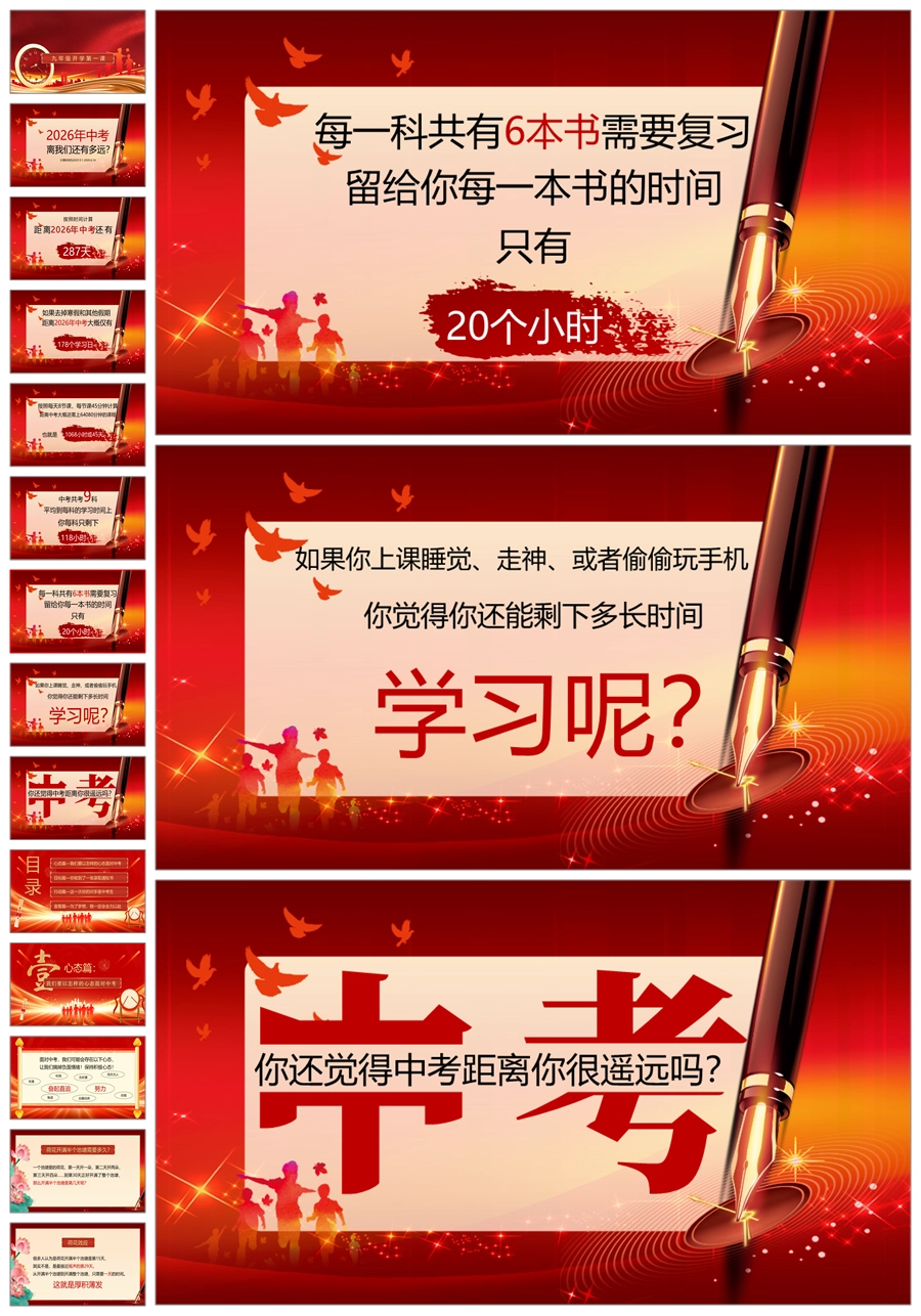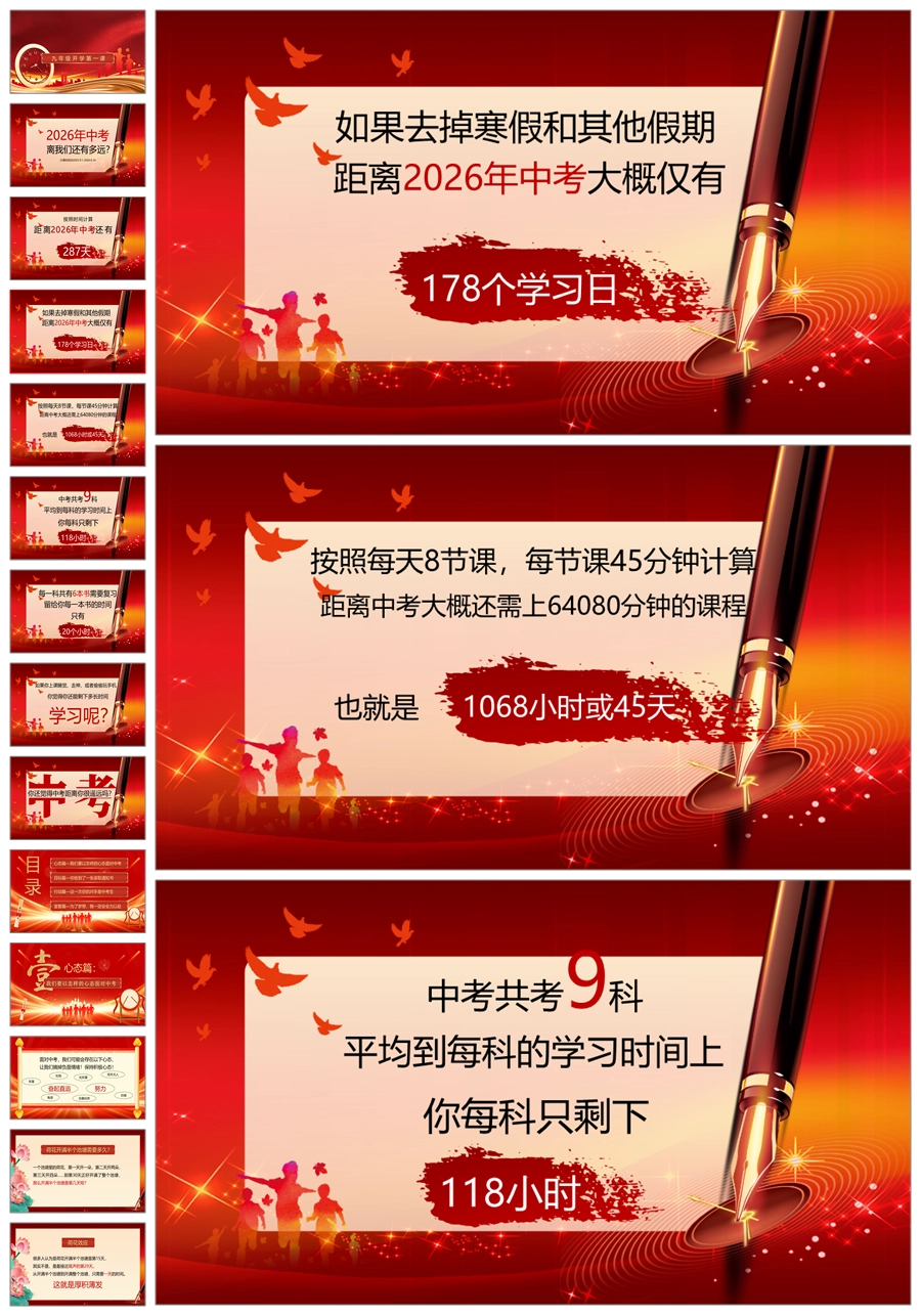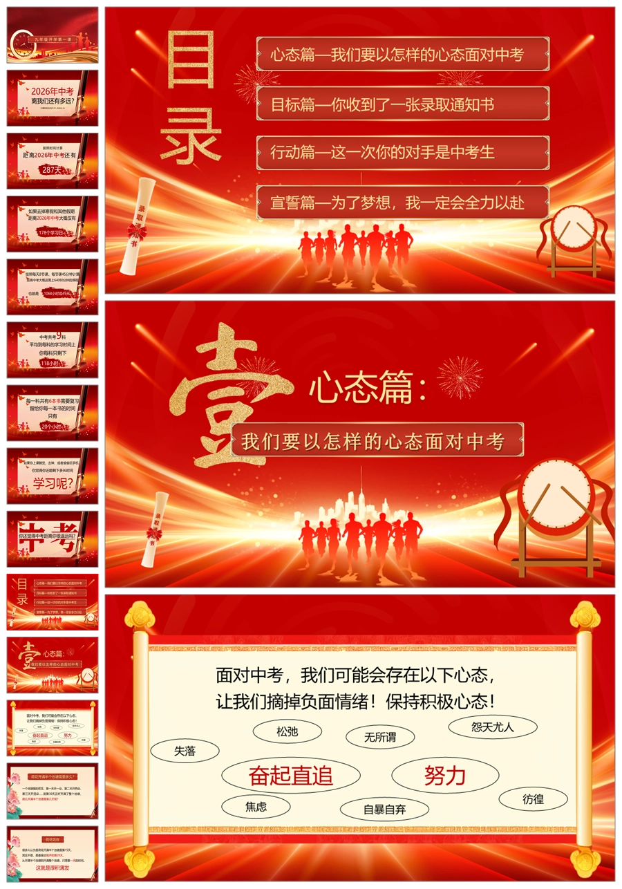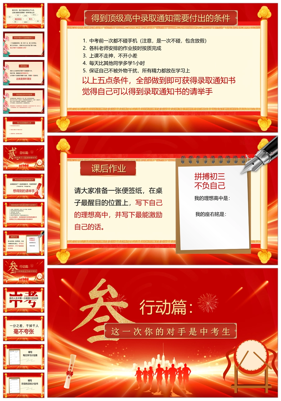 【5010】九年级开学第一课《迎战中考》中考开学第一课初三开学第一课ppt课件+发言稿