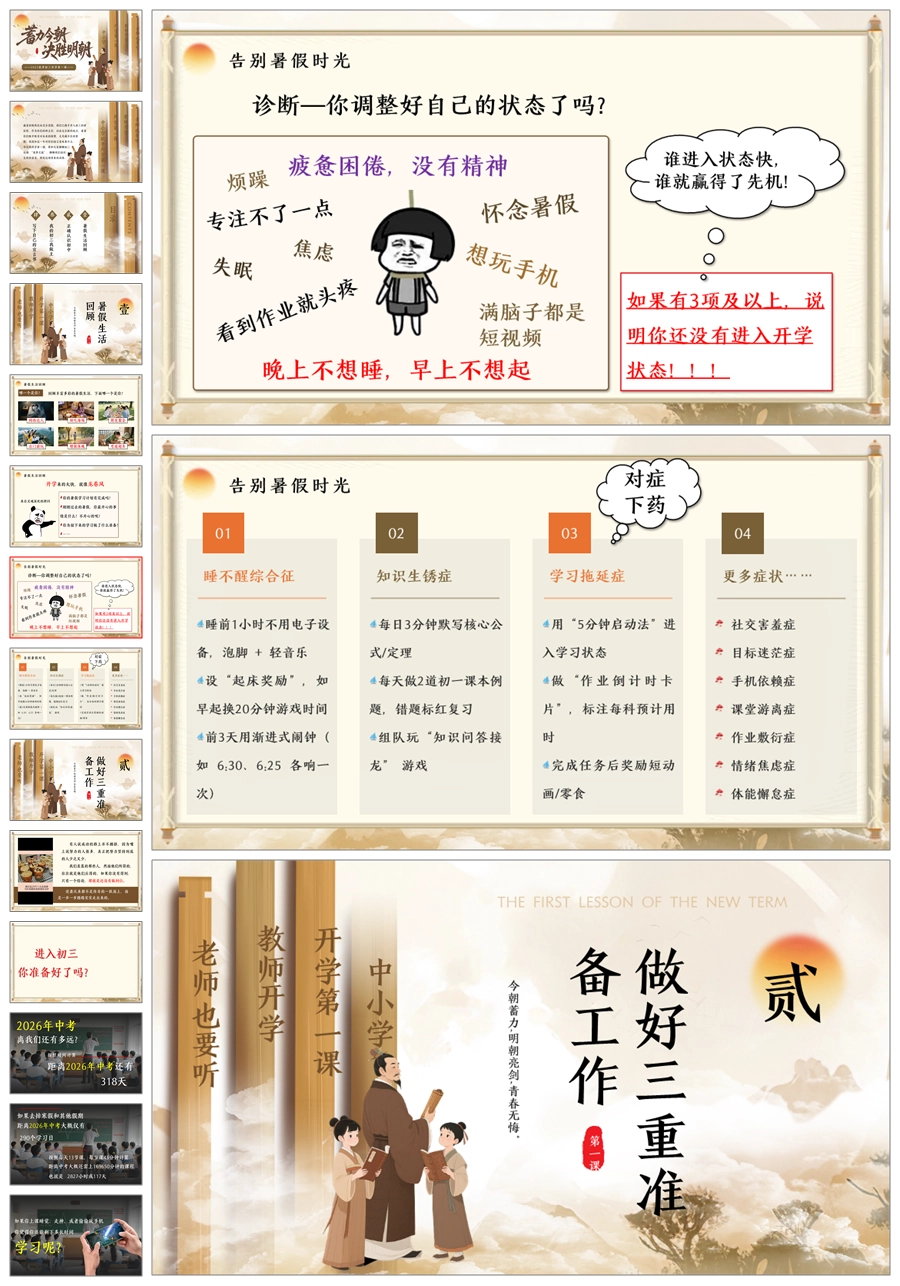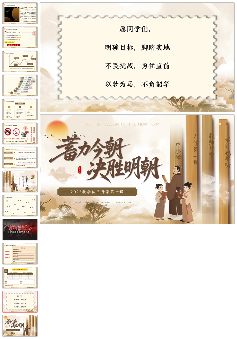 首页 初中班会 【5039】初三开学第一课《蓄力今朝决胜明朝》九年级上学期开学第一课ppt课件+发言稿
