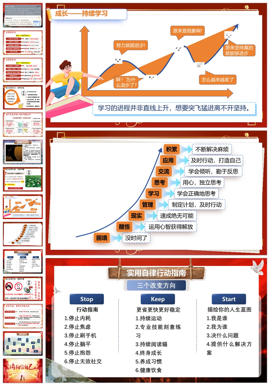 【5583】《自习的静成长的劲》竹子定律班会励志主题班会PPT课件+发言稿