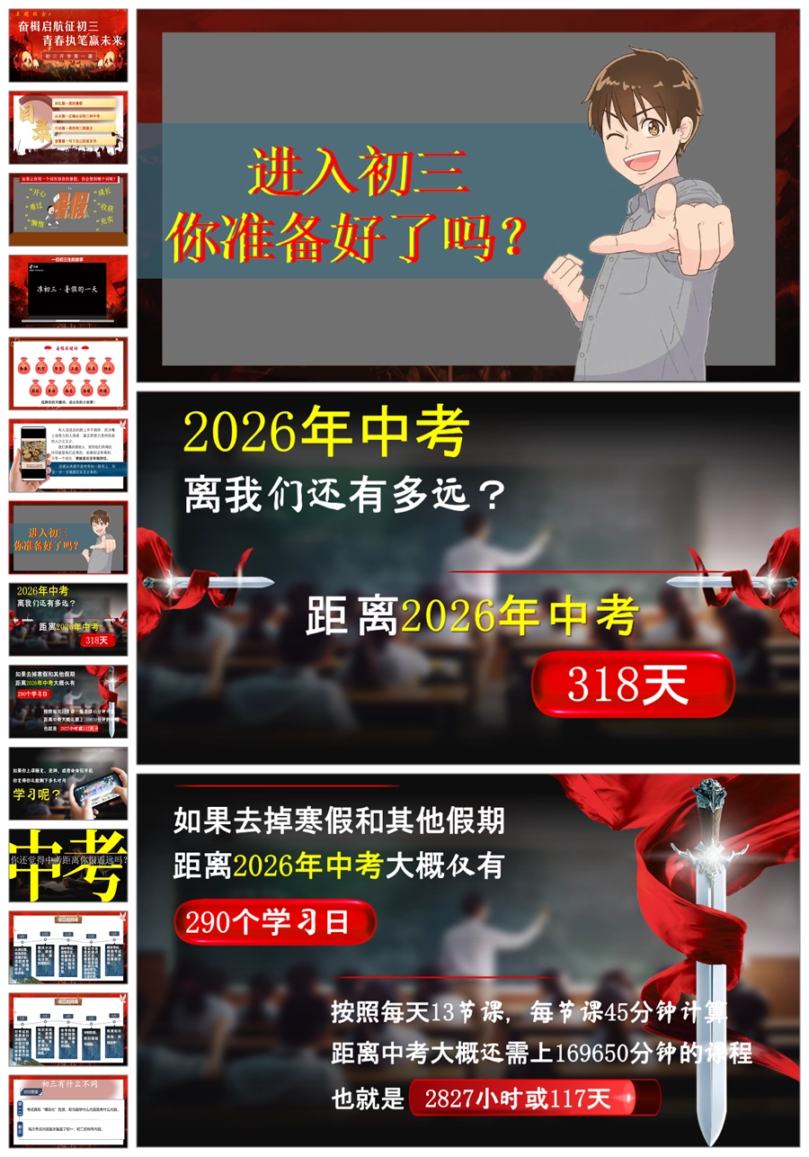 【8507】初三秋季开学第一课主题班会ppt《奋楫启航征初三》ppt课件+发言稿