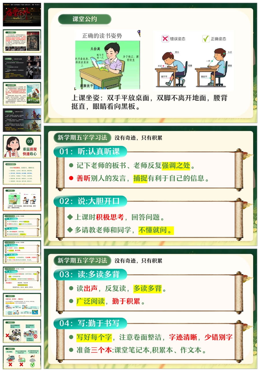 【5583】《自习的静成长的劲》竹子定律班会励志主题班会PPT课件+发言稿