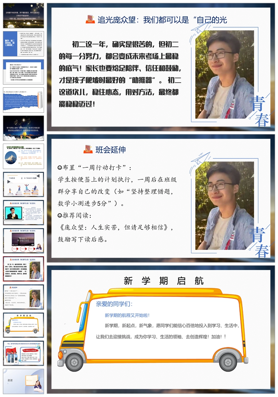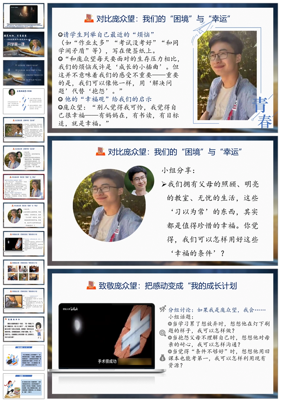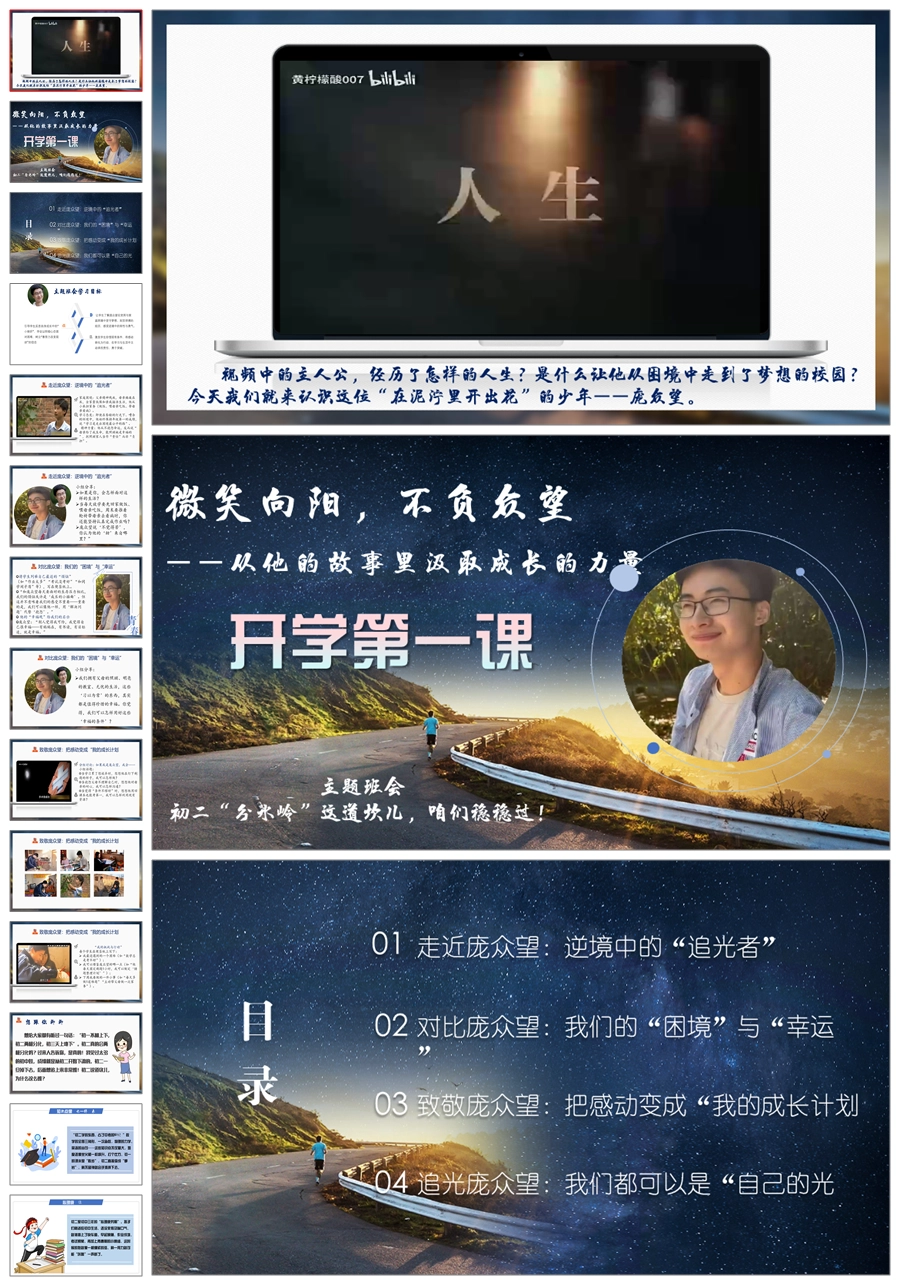 【5058】庞众望感动中国2024年人物开学第一课《微笑向阳不负众望》ppt课件+逐字稿+视频