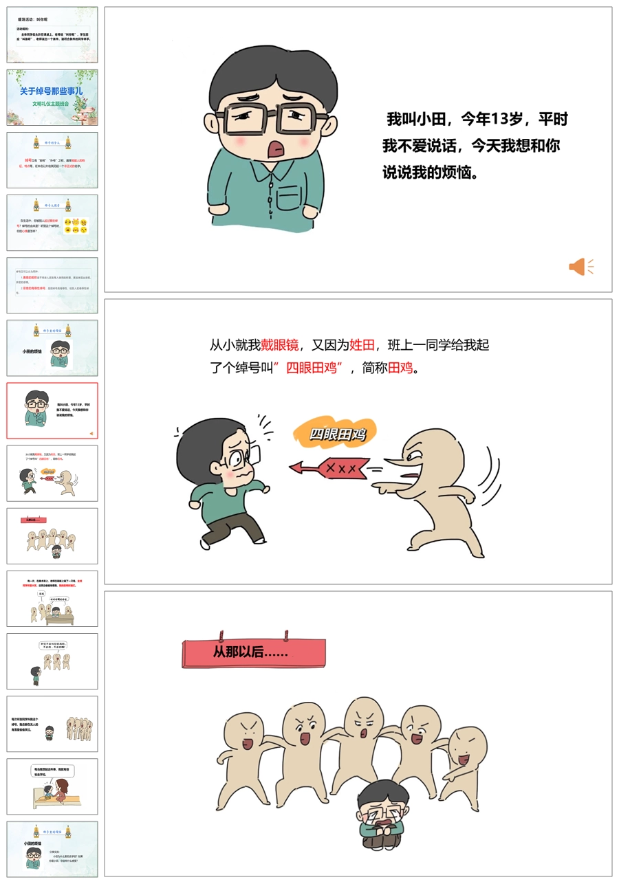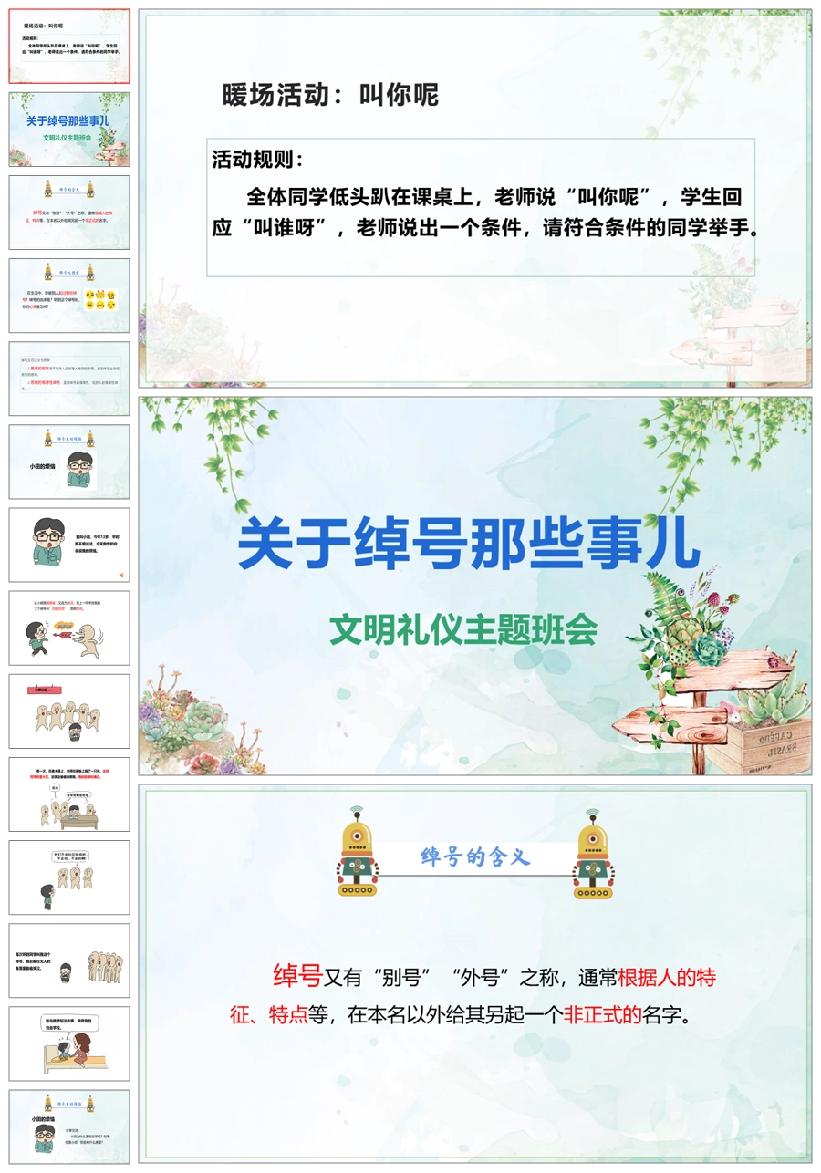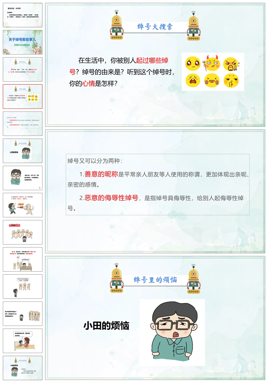 【8053】《关于绰号那些事》学生取外号文明礼仪班会PPT(课件+教案)