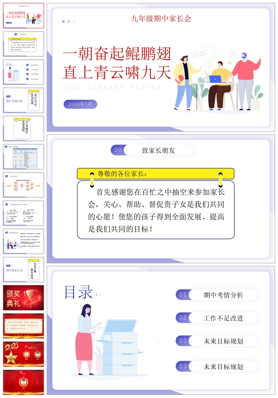 【8101】【九年级家长会】《一朝奋起鲲鹏翅,直上青云啸九天》九年级期中家长会PPT(课件+逐字稿)
