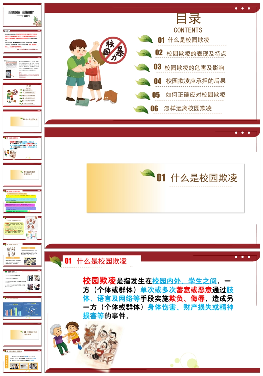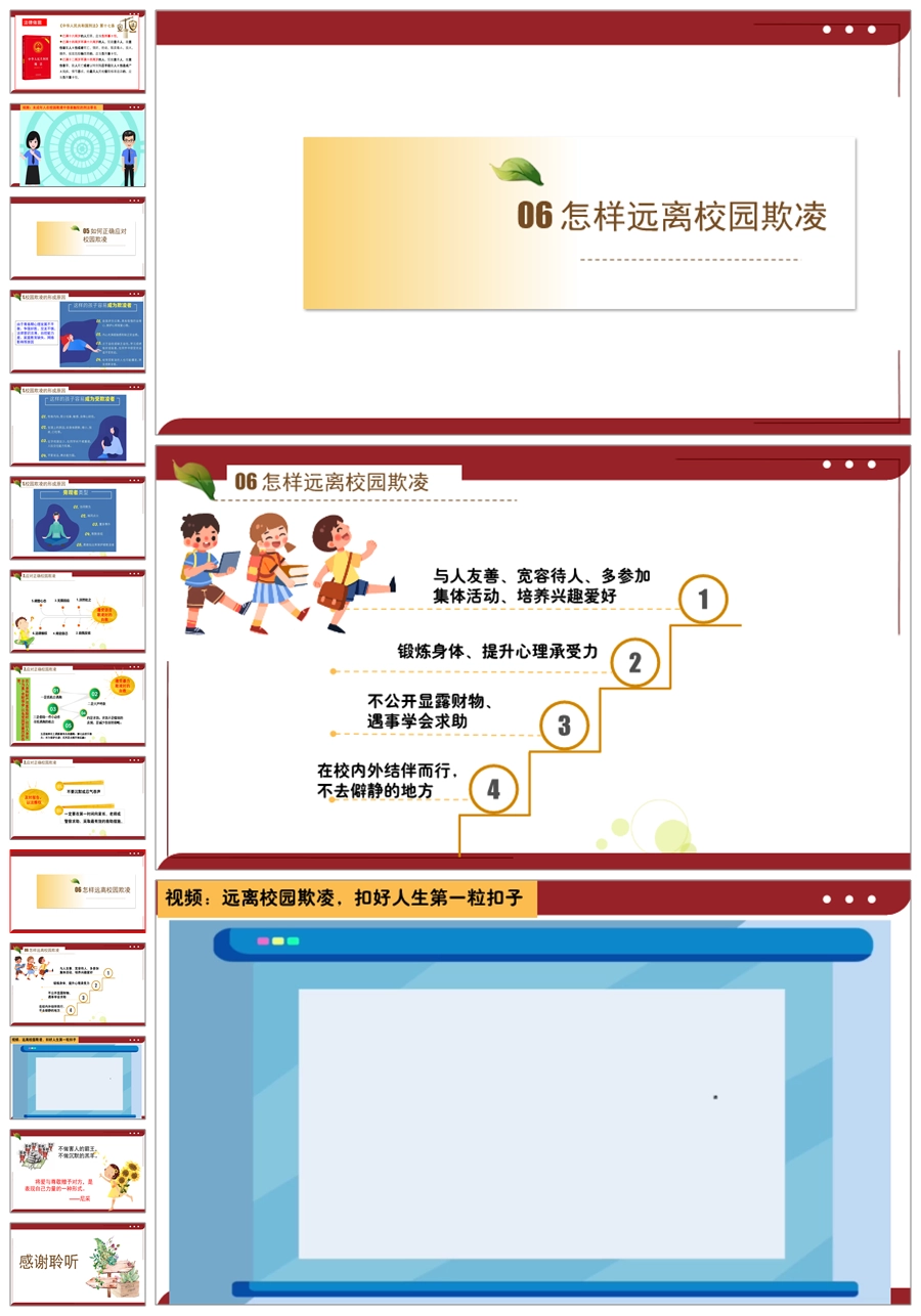 【8119】【欺凌话题】《拒绝欺凌,和谐相伴》拒绝校园欺凌主题班会课件PPT(含视频)