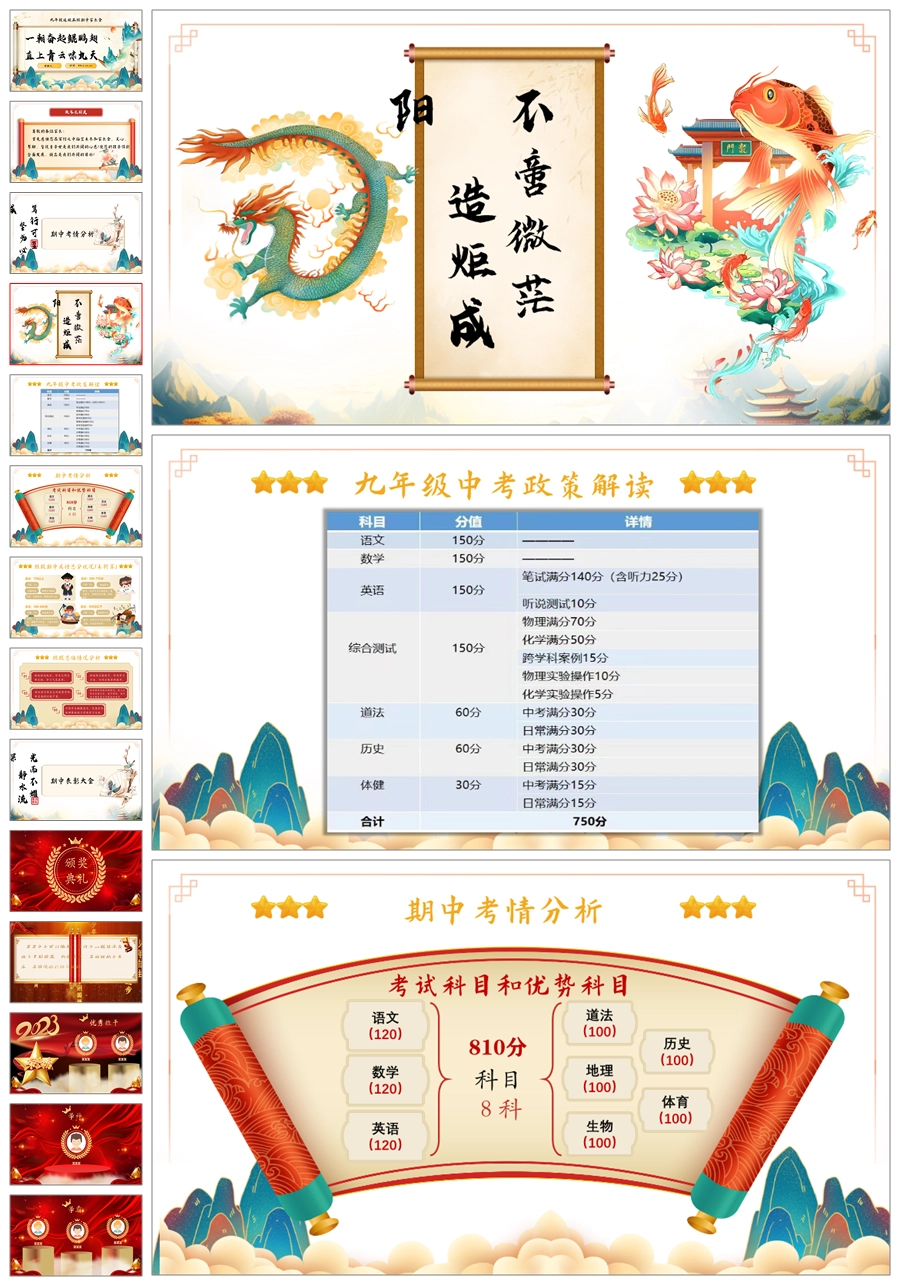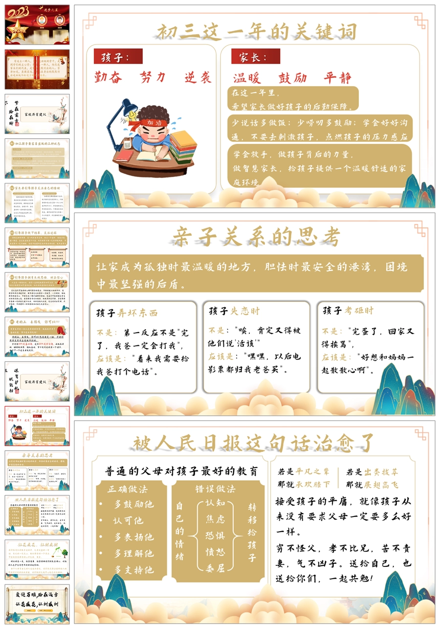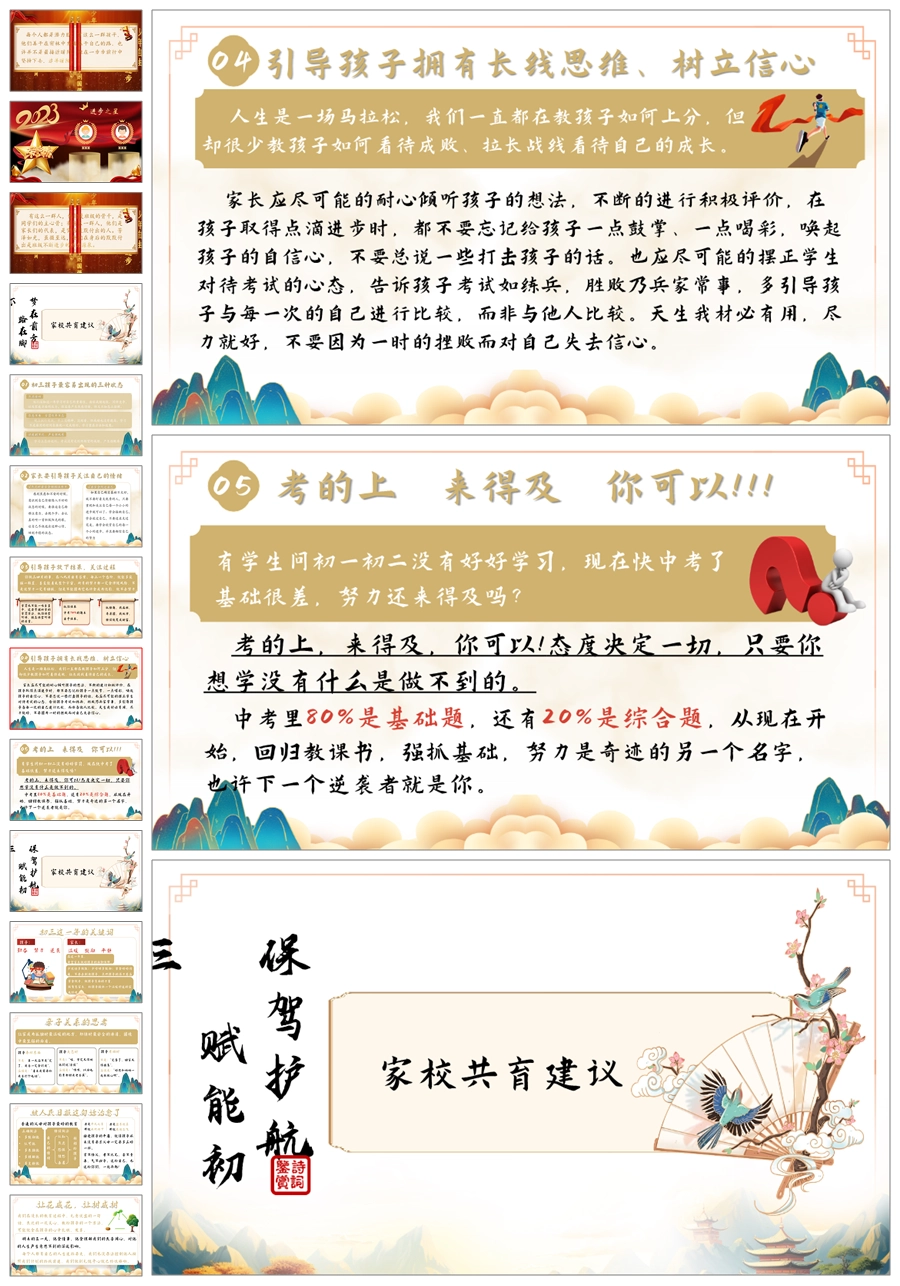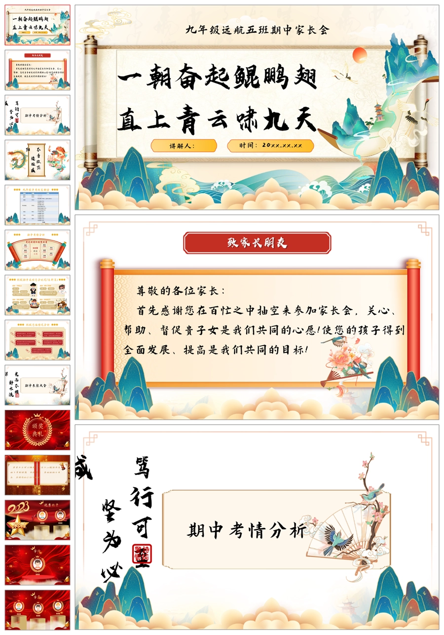 【8145】【九年级家长会】《一朝奋起鲲鹏翅,直上青云啸九天》九年级期中家长会PPT(课件+逐字稿)