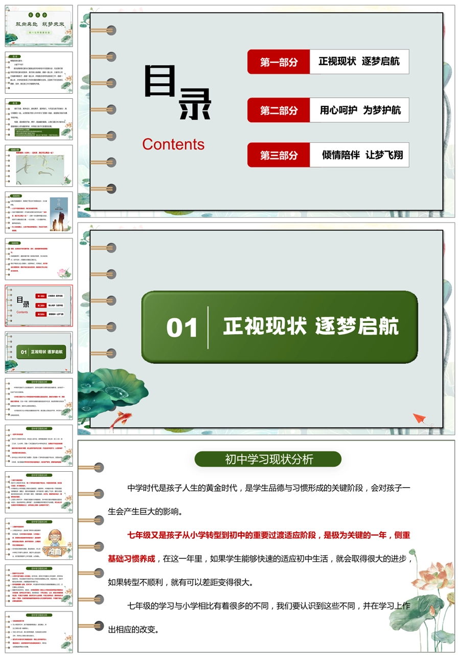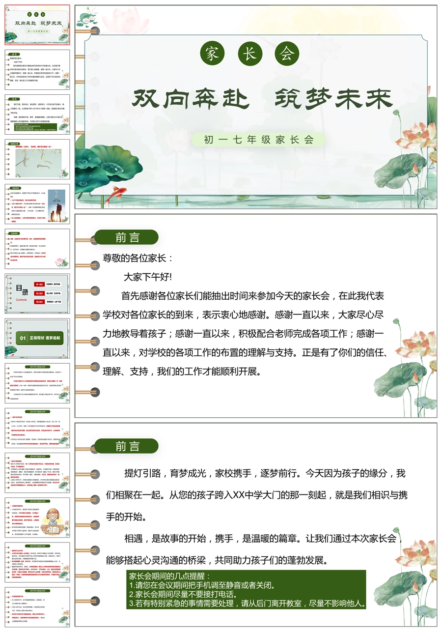 【8195】【七年级家长会】《携手同行共筑梦想》七年级开学家长会PPT(课件+讲稿+视频)
