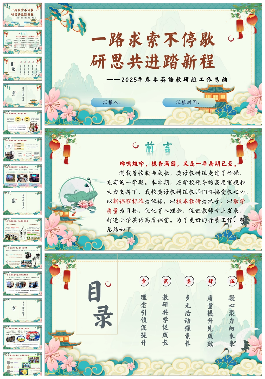【8439】英语教研组工作总结《一路求索不停歇》英语科组工作总结工作述职ppt课件+配套发言稿