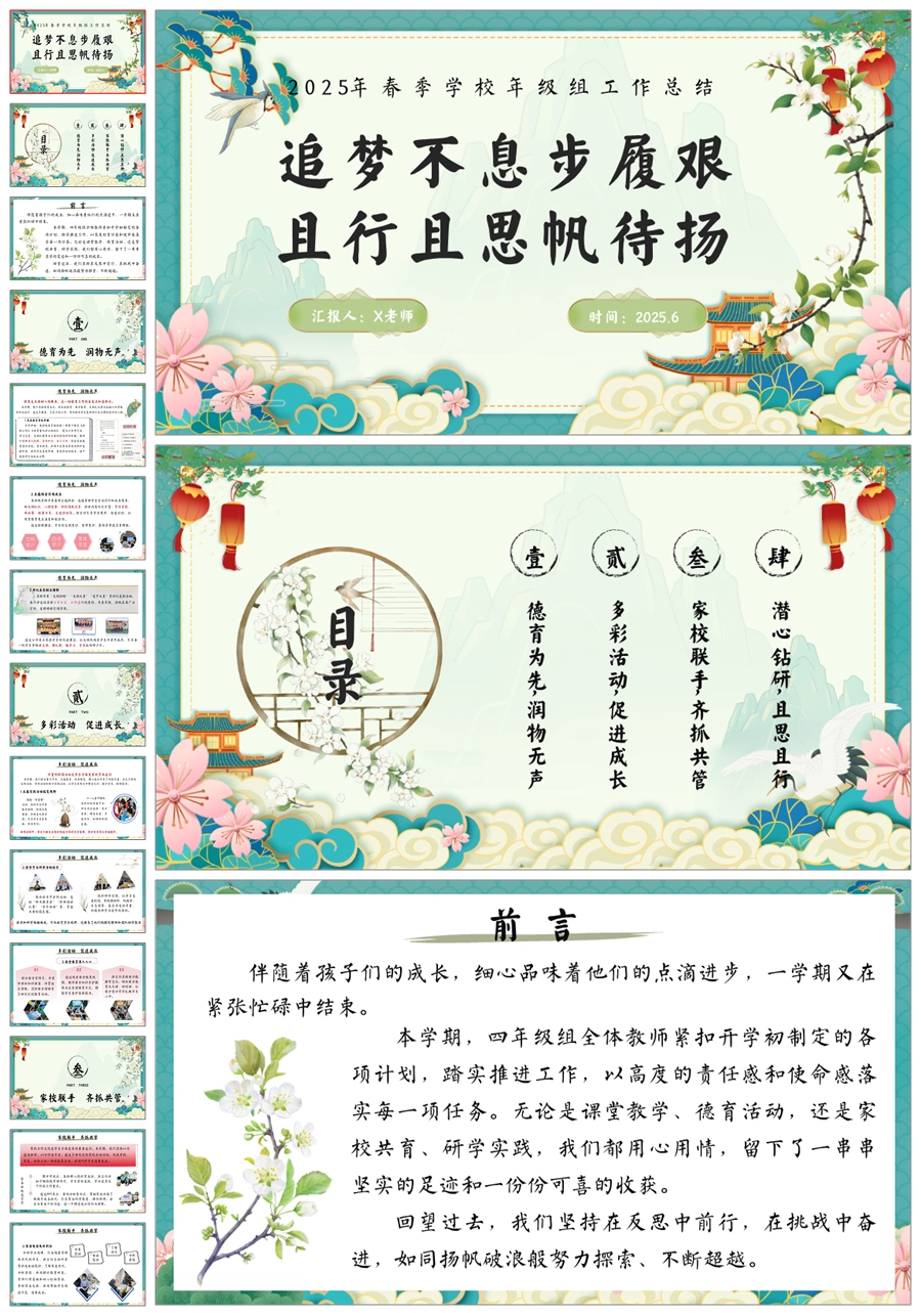 【8441】学校年级组工作总结《追梦不息步履艰》ppt课件+配套发言稿