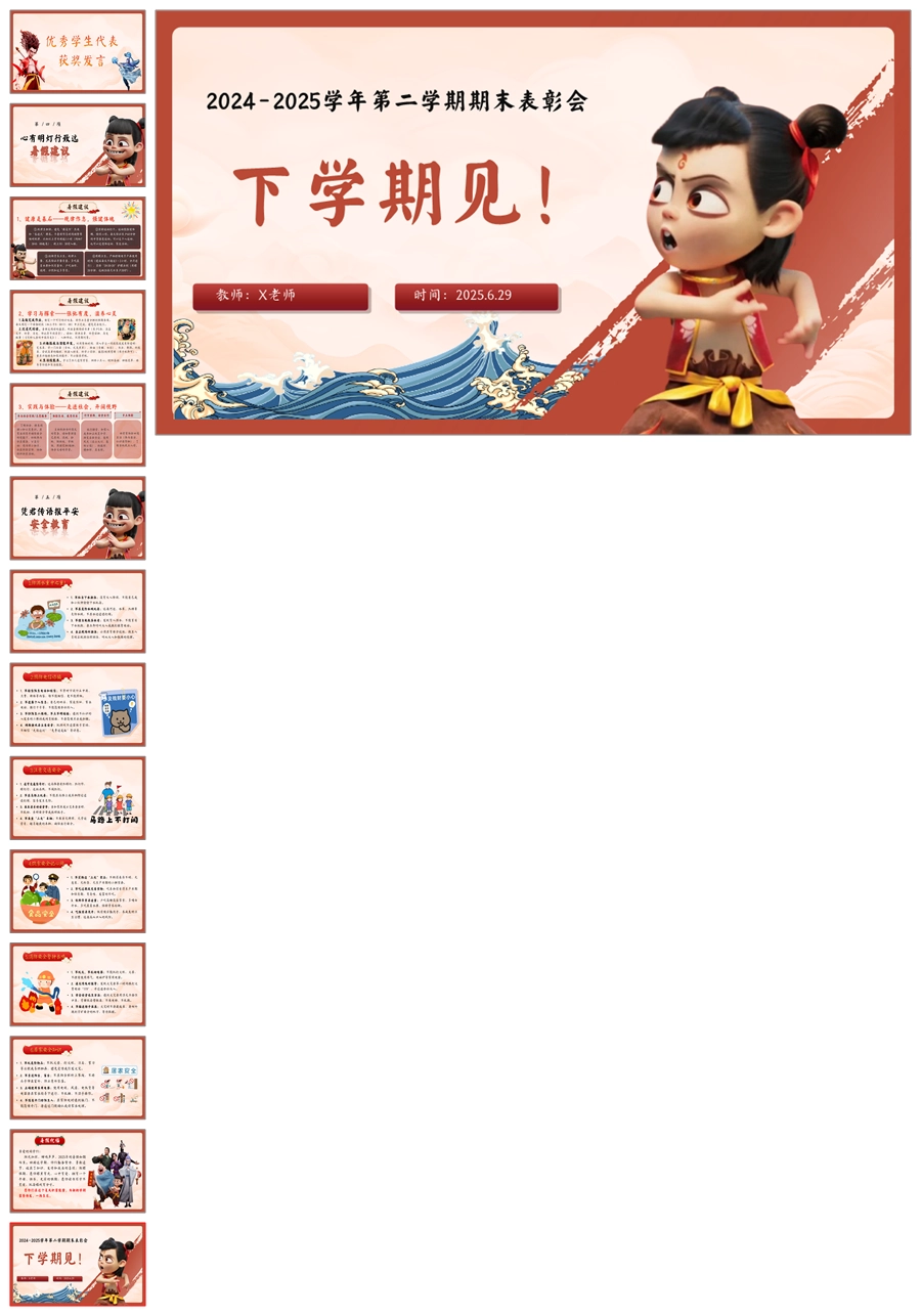 【8442】暑假期末颁奖表彰大会及暑假安全教育PPT《哪吒封神,榜样闪耀》ppt课件+配套发言稿