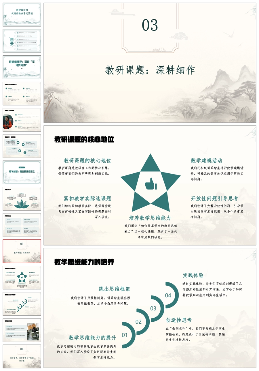 【8443】数学教研组优秀经验分享交流稿PPT《以数学之光 点亮智慧之路》ppt课件+配套发言稿