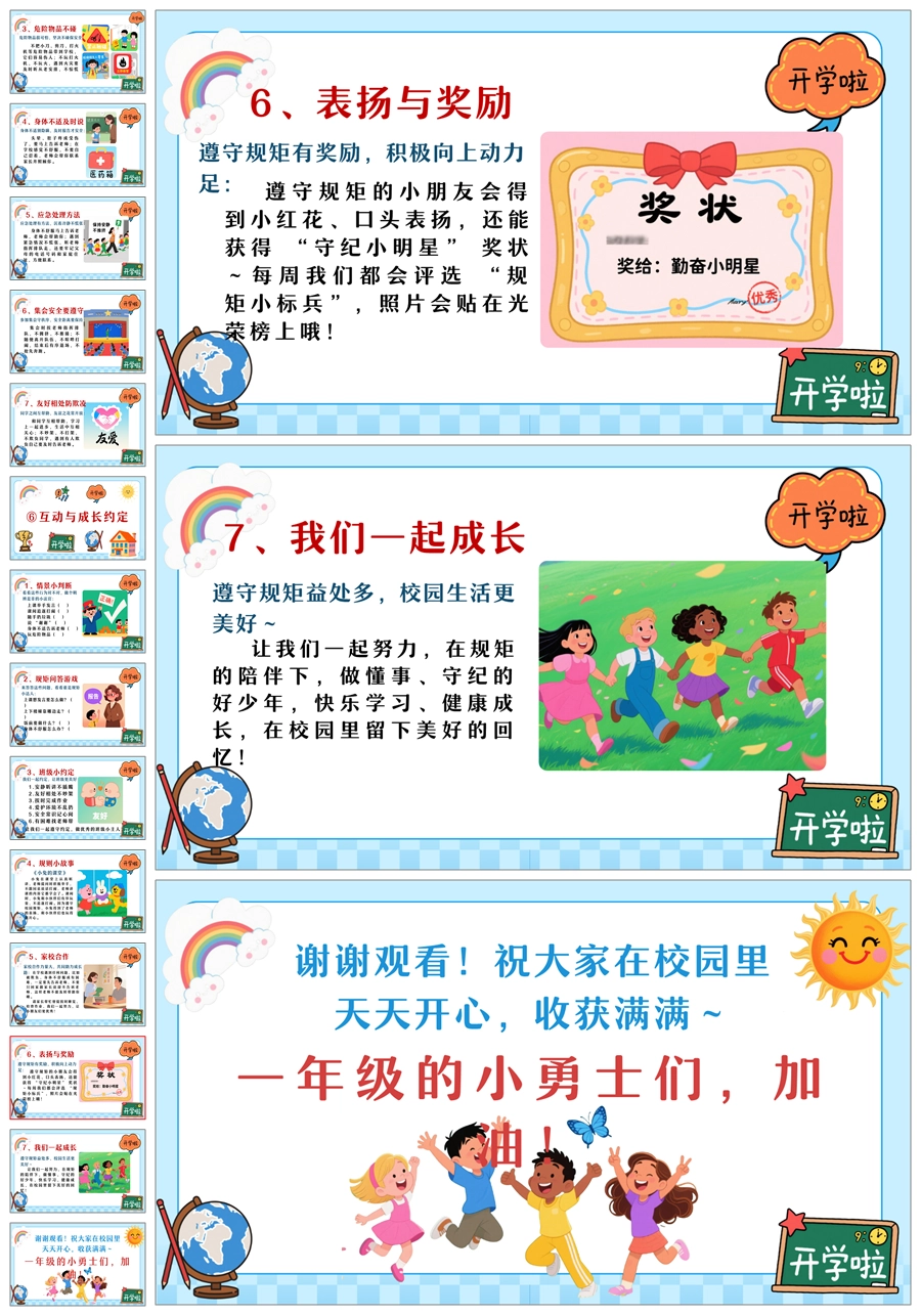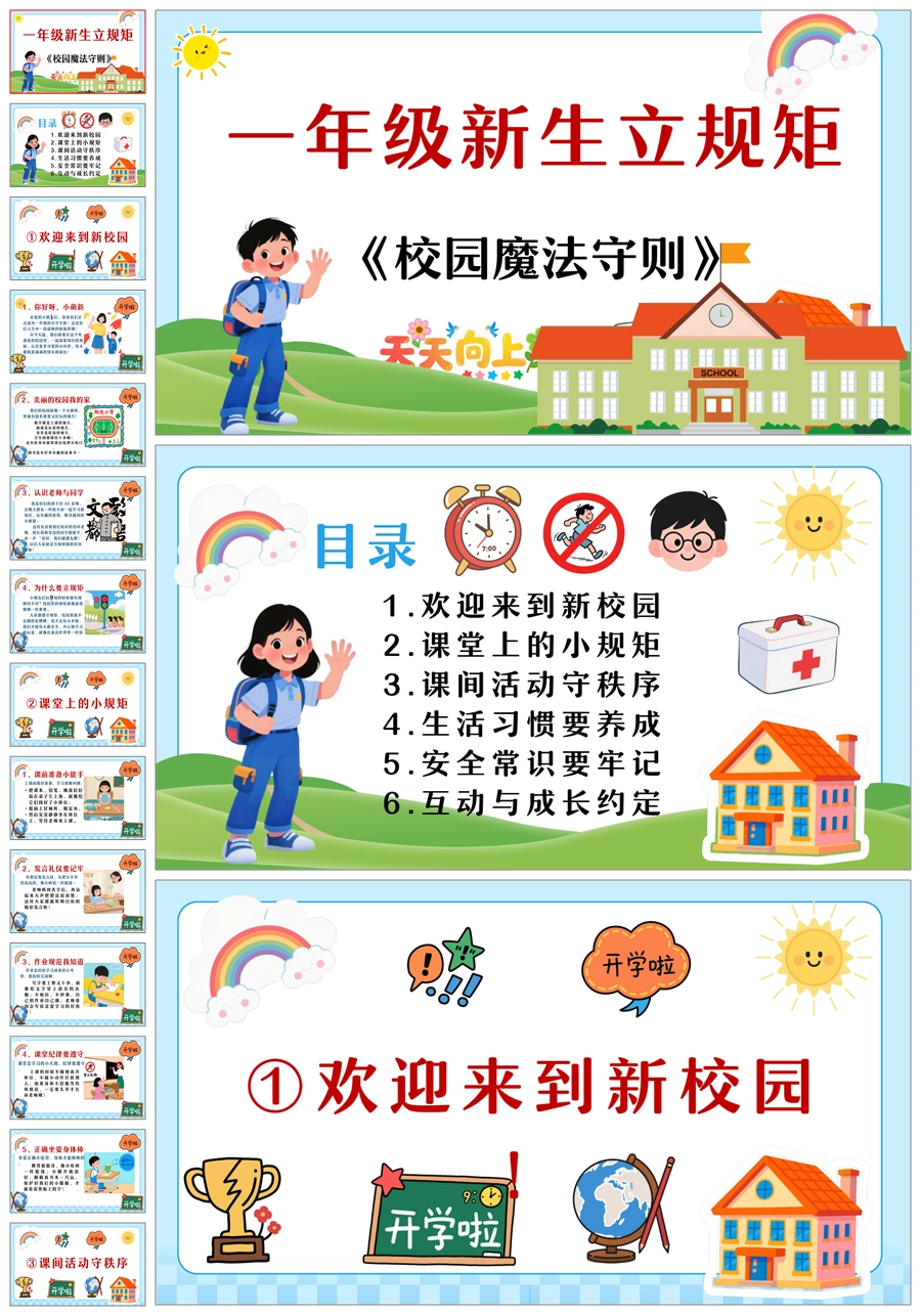 【8513】《一年级立规矩》一年级开学第一课常规教育PPT课件+逐字稿