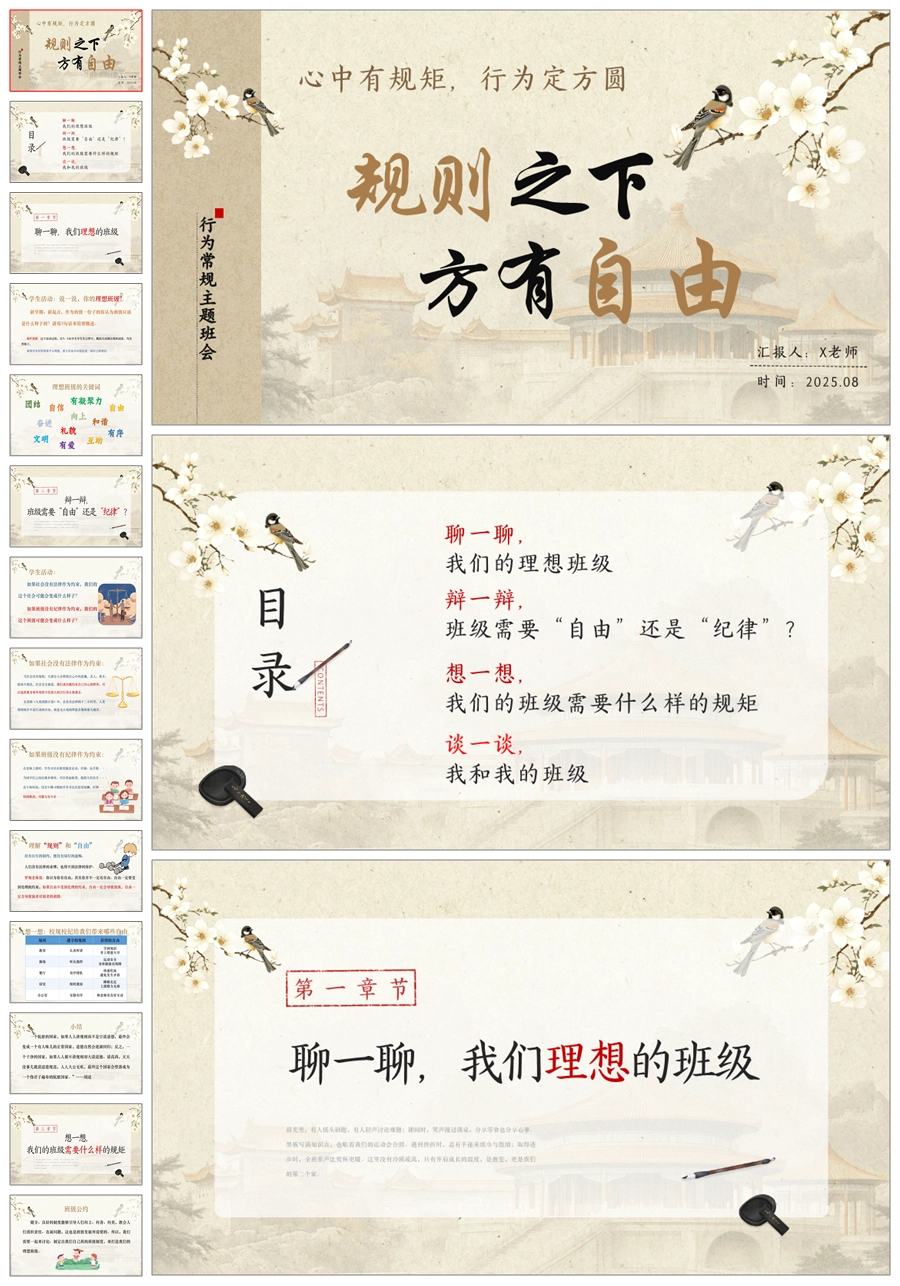 【8540】班级纪律话题班会《规则之下,方有自由》PPT课件+教案