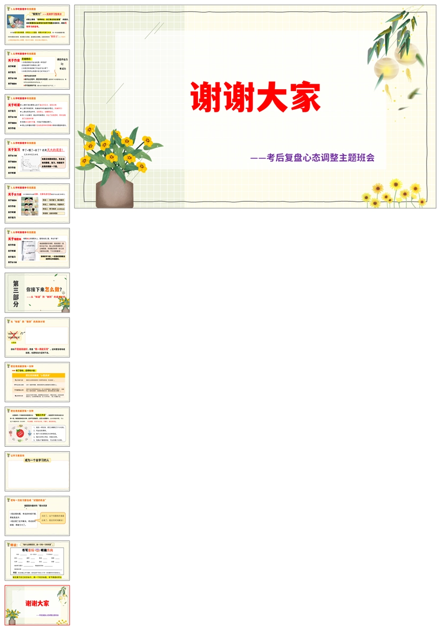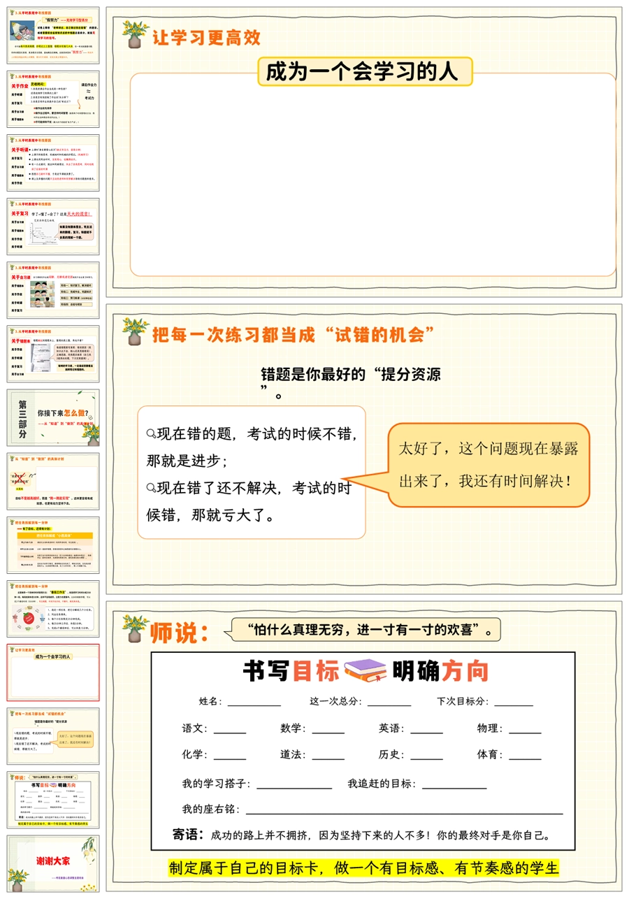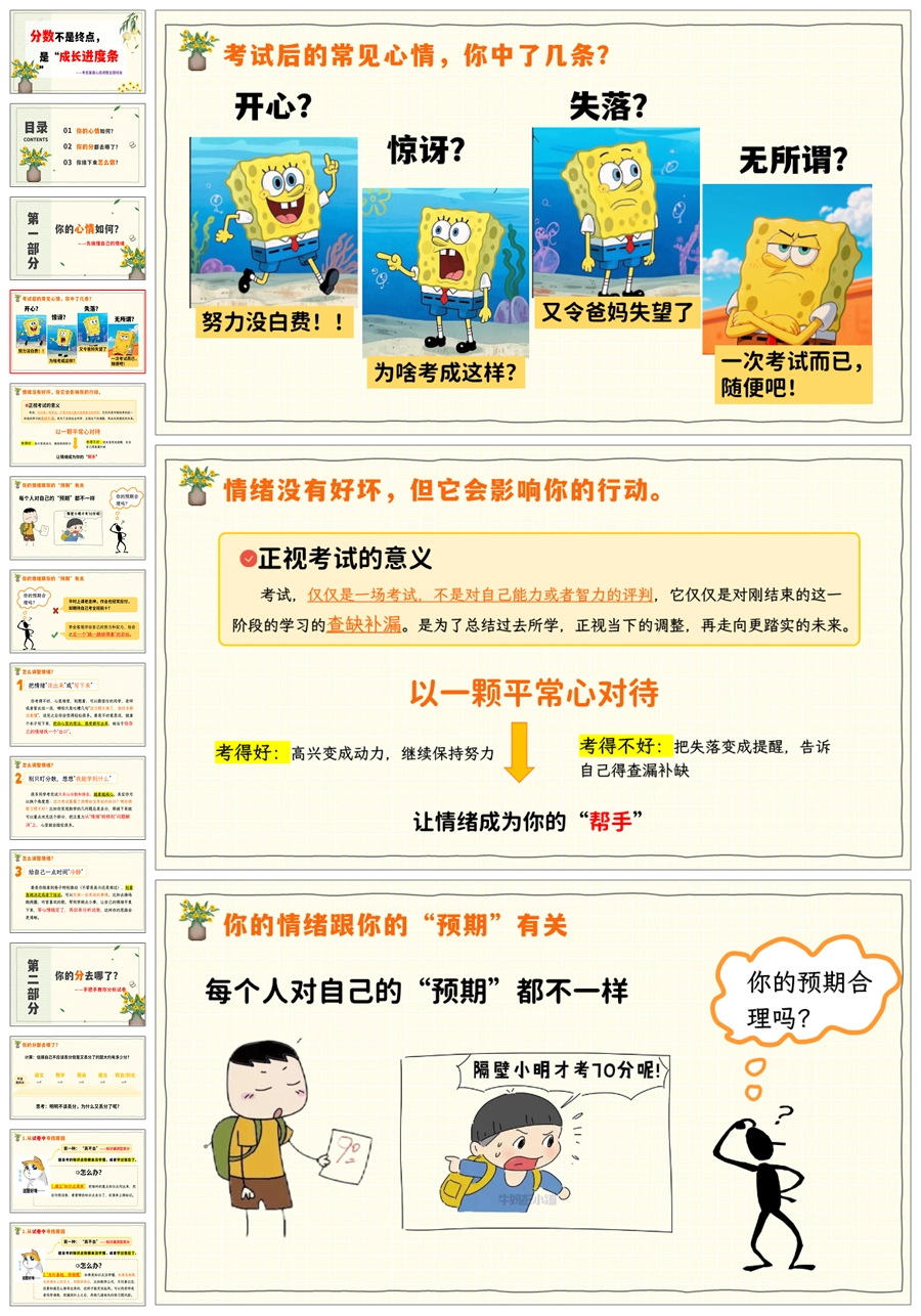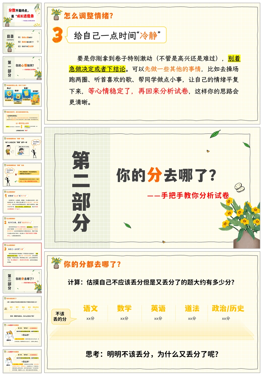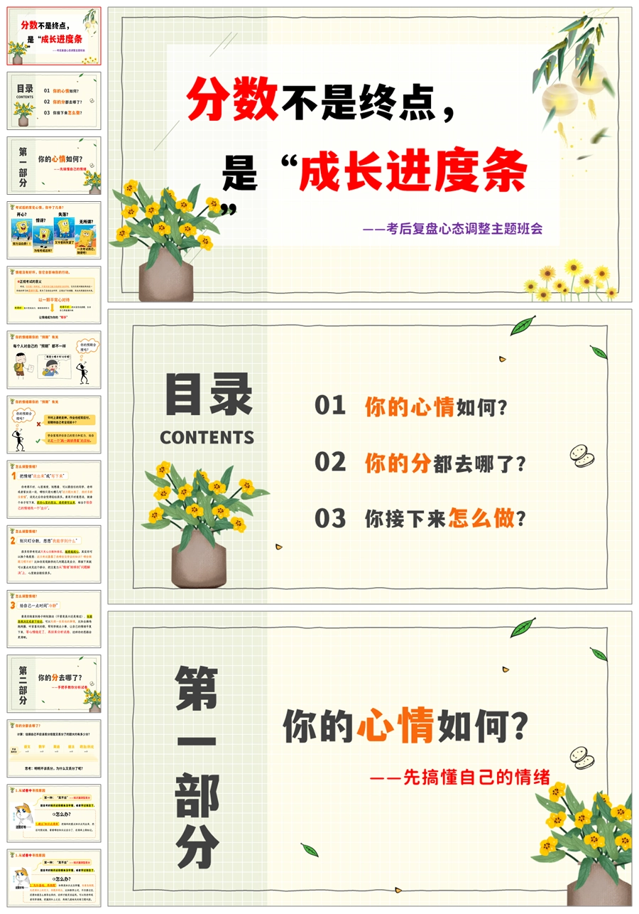 【5049】期中考试总结班会《分数不是终点是成长进度条》考后复盘心态调整主题班会PPT课件+教案