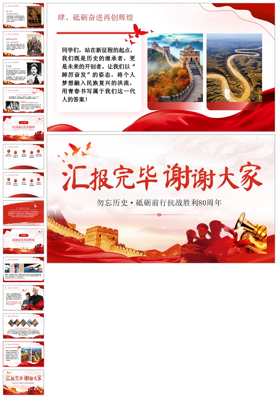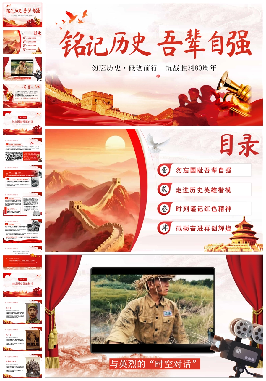【5050】纪念抗战胜利80周年主题班会《铭记历史吾辈自强》纪念抗日战争胜利80周年PPT课件+教案+视频