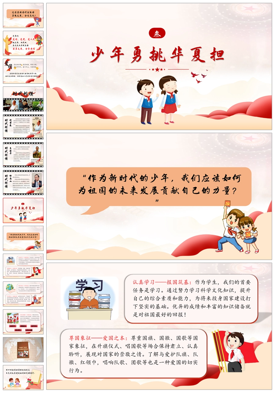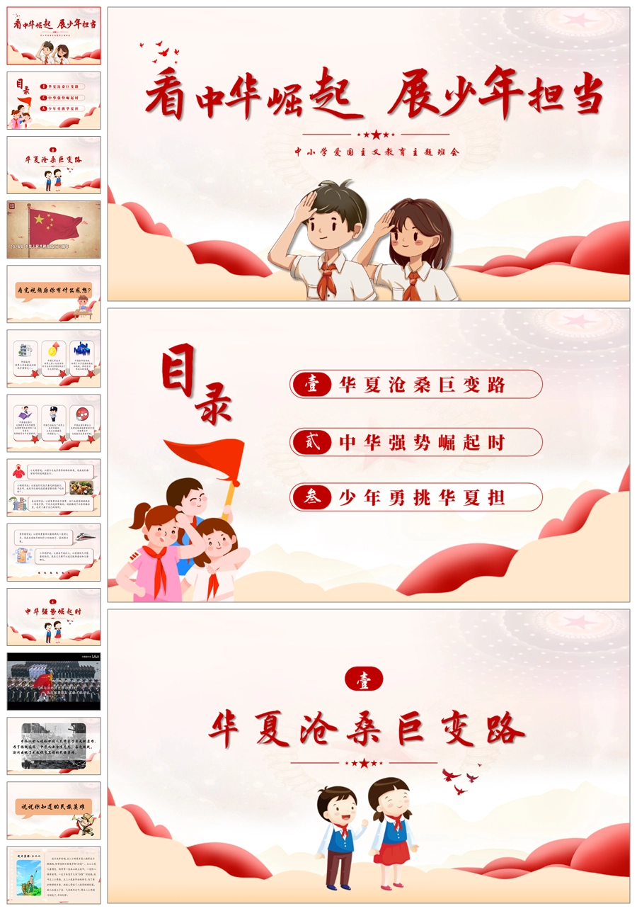 【5043】爱国主义教育主题班会《看中华崛起展少年担当》爱国教育PPT课件+教案