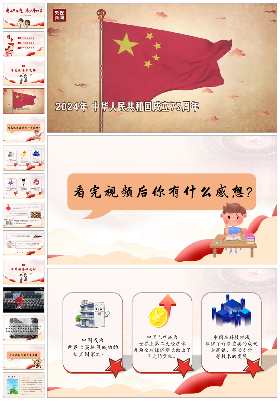 【5733】《盛世华诞,爱我中华》爱国主义教育主题班会PPT课件+视频+教案+发言稿