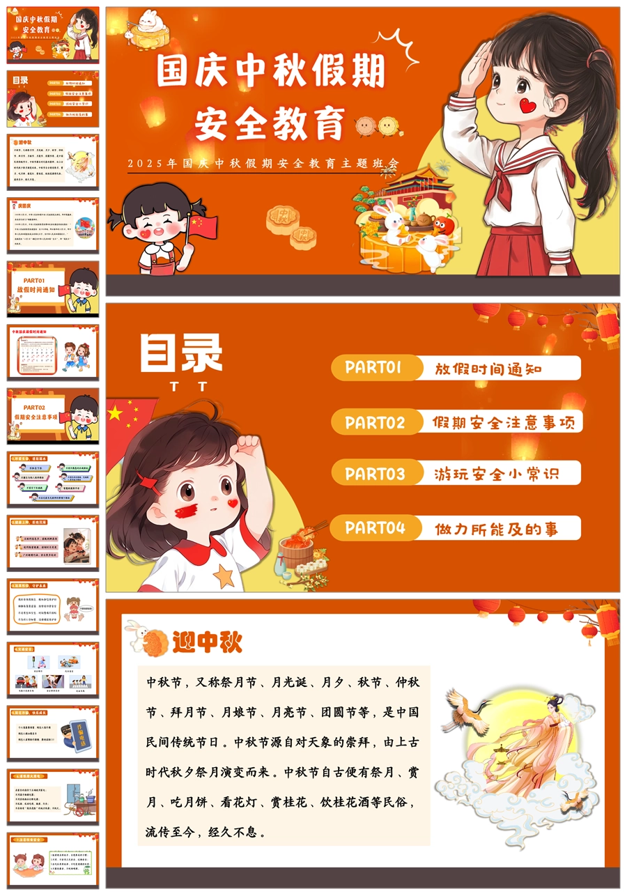 【5087】2025年国庆中秋假期安全教育主题班会ppt课件+教案