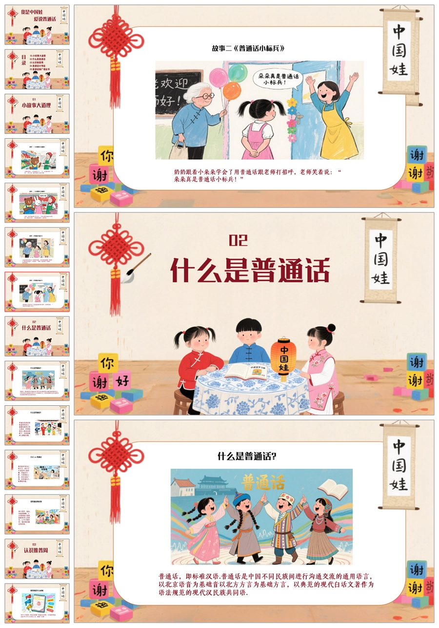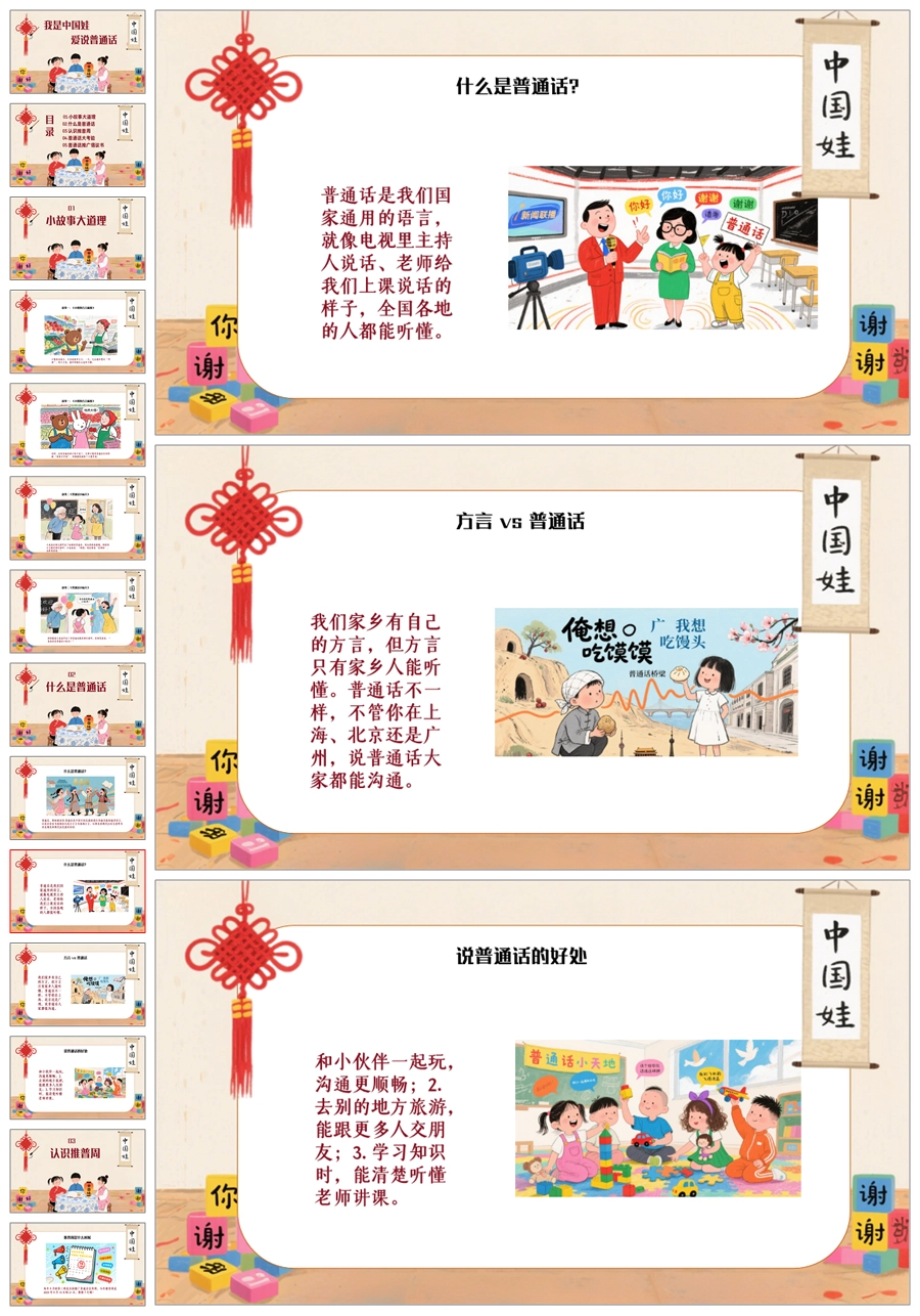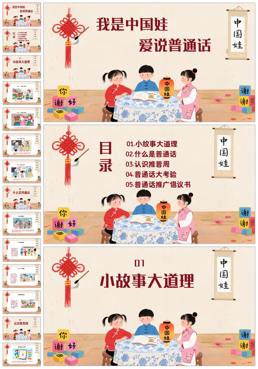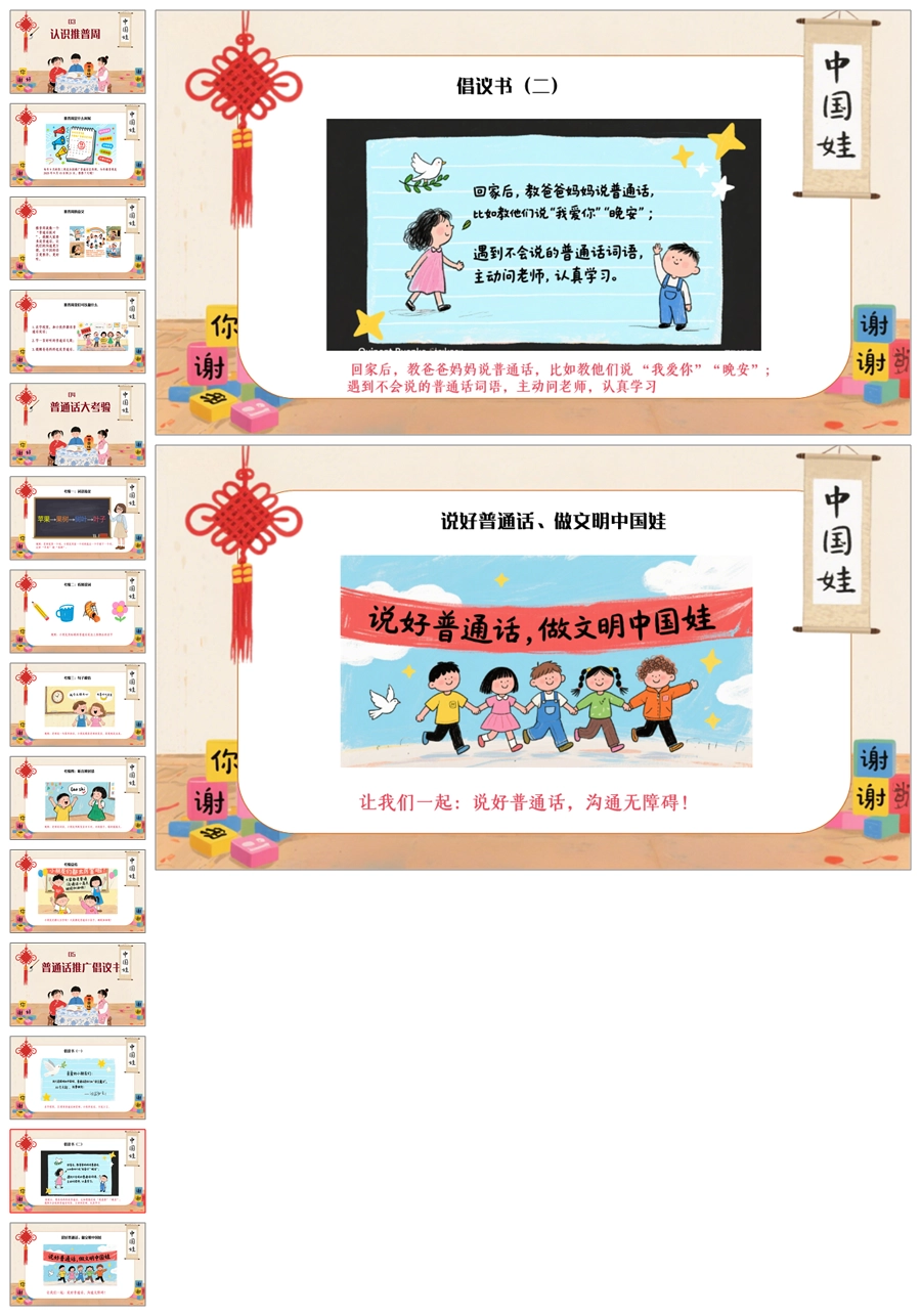 【5094】《我是中国娃,爱说普通话》普通话推广周主题班会ppt课件+发言稿