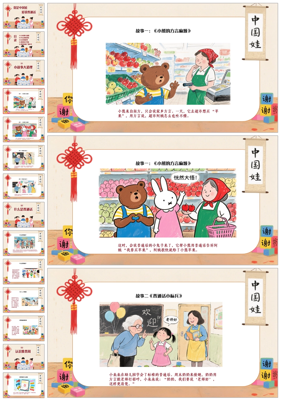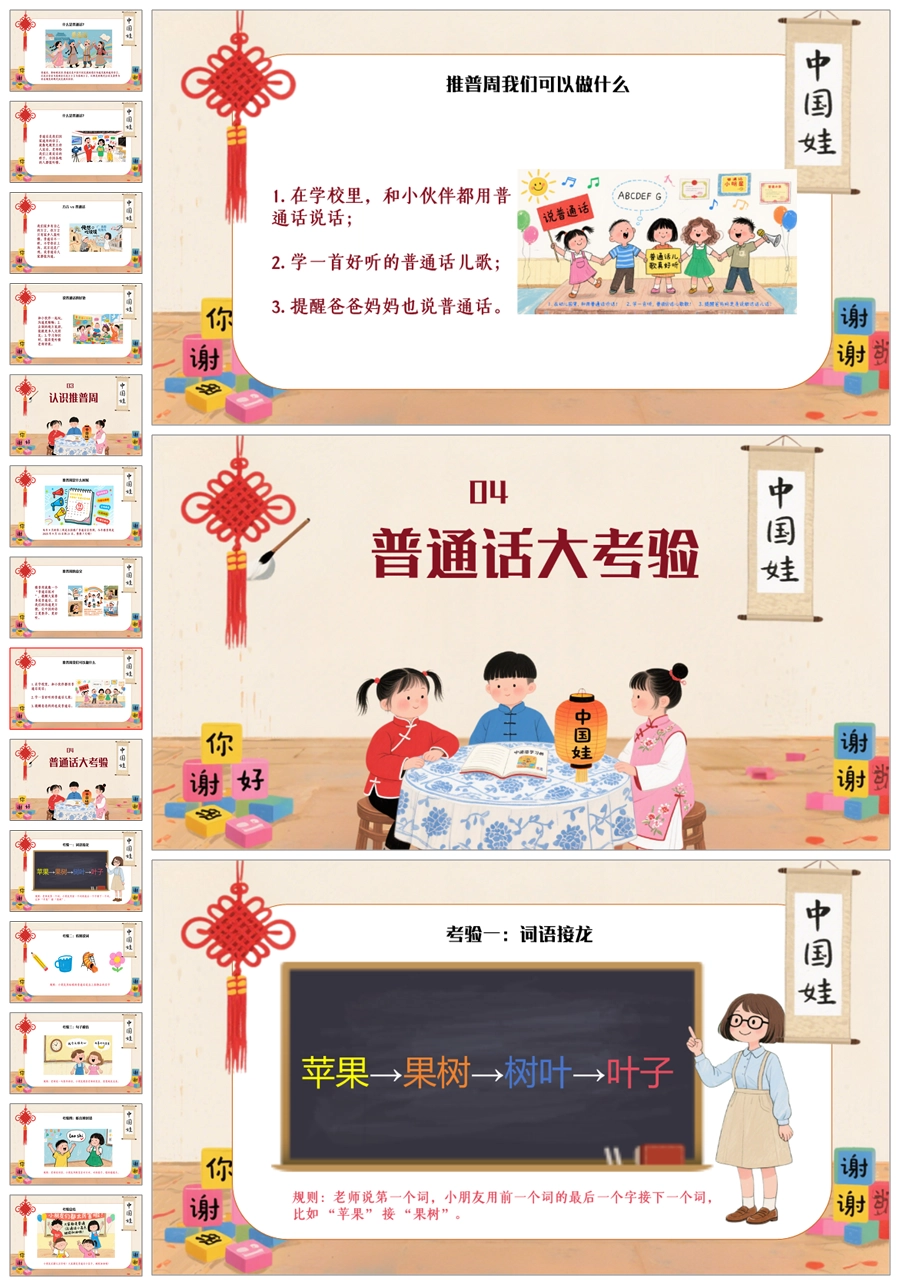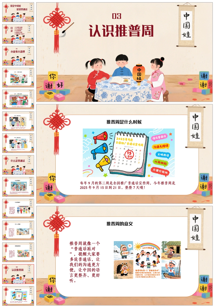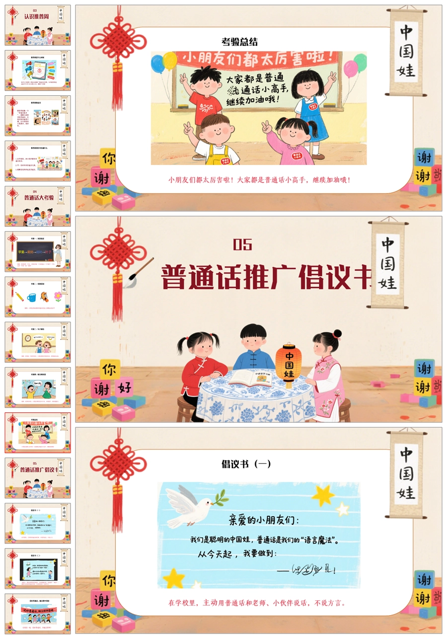 【5094】《我是中国娃,爱说普通话》普通话推广周主题班会ppt课件+发言稿