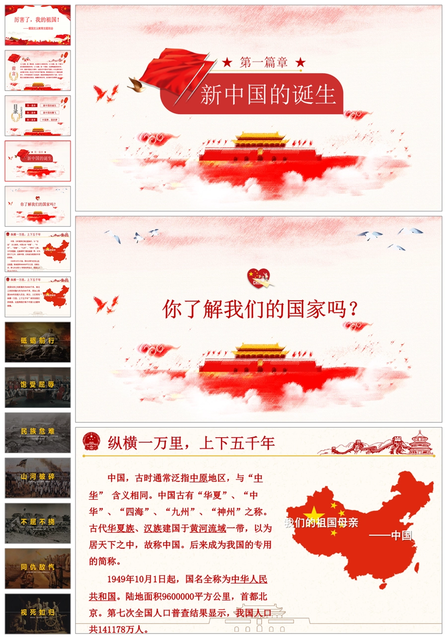 【5733】《盛世华诞,爱我中华》爱国主义教育主题班会PPT课件+视频+教案+发言稿