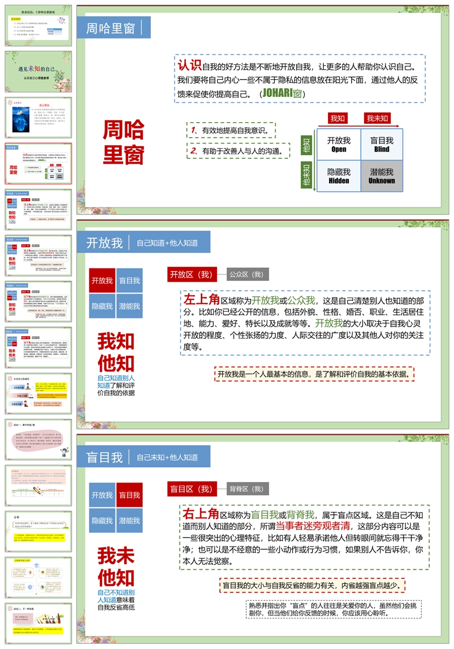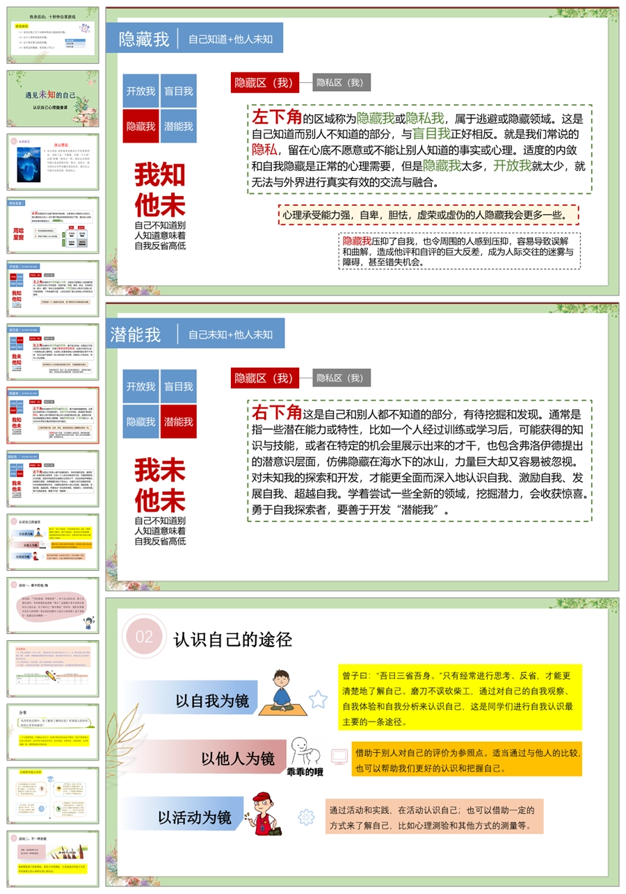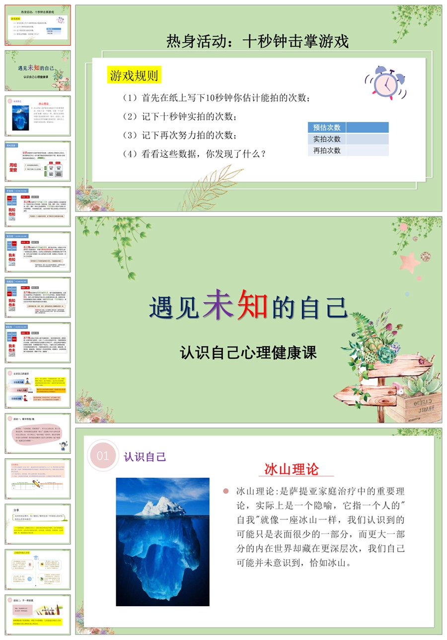 【8075】【心理健康】《遇见未知的自己》认识自己心理健康主题班会PPT课件(含课件教案视频资料)