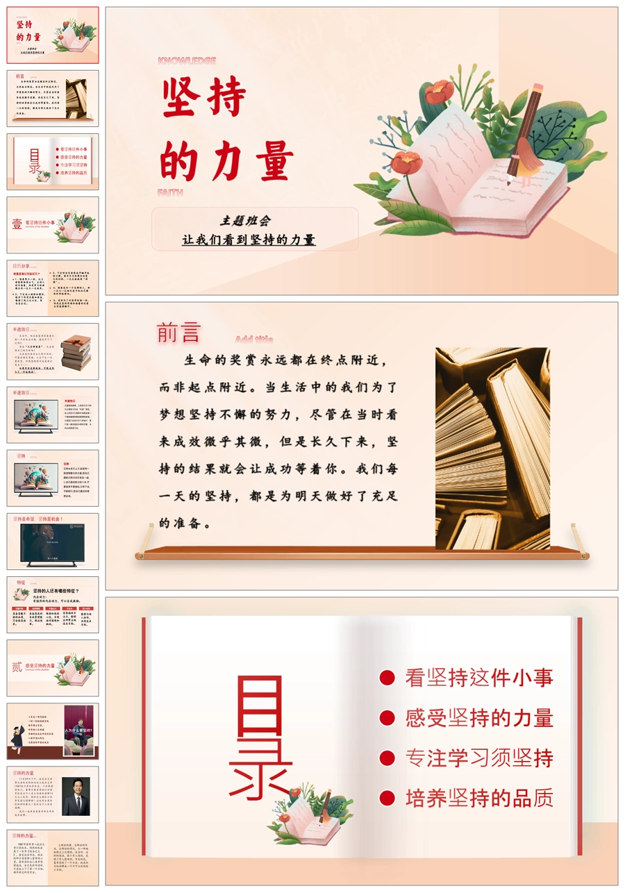 【8079】【坚持话题】《坚持的力量》以坚持为话题主题班会PPT课件(课件+视频)