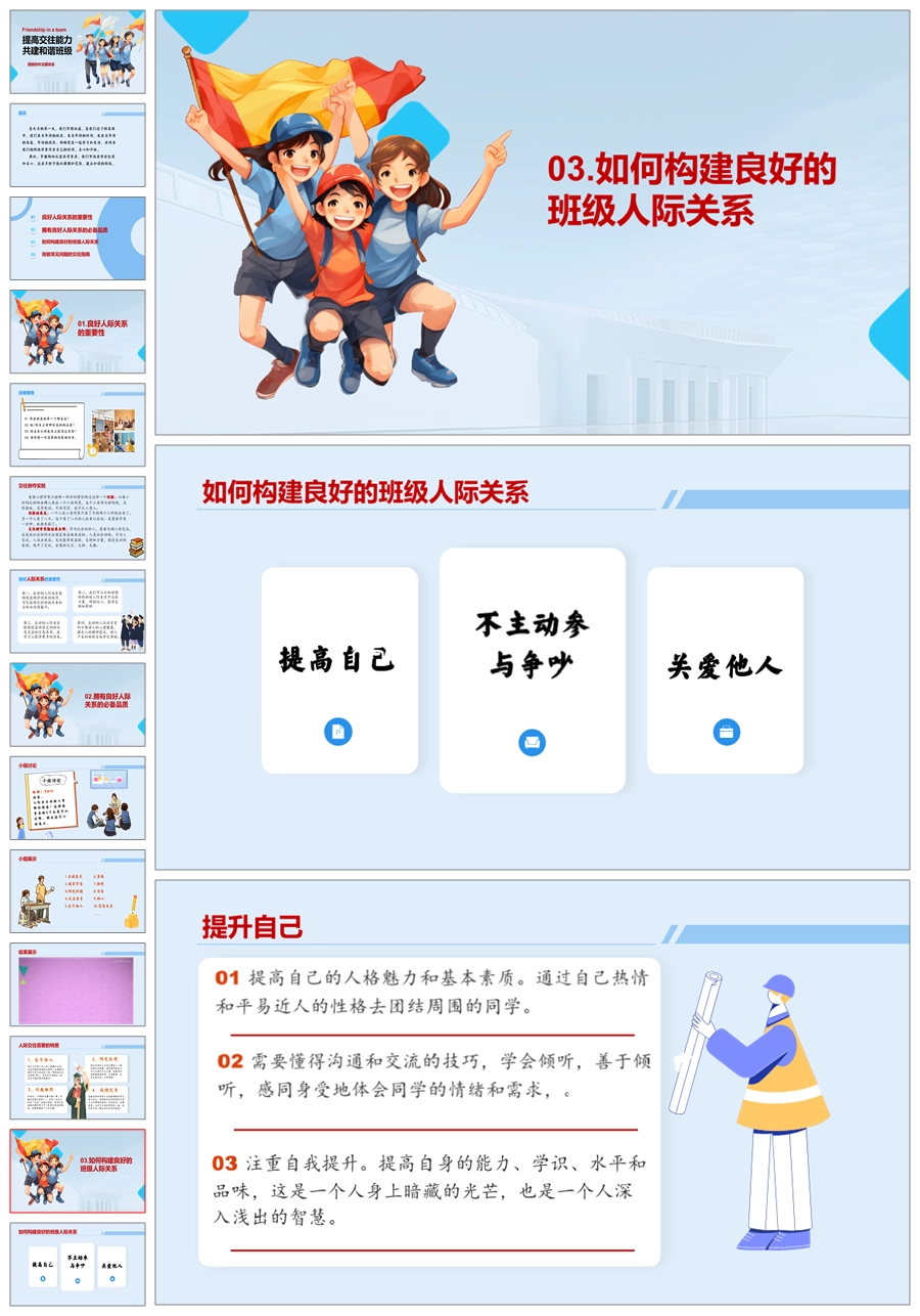 【8098】【班级建设】《营造良好人际关系,共建和谐班级》班集体建设主题班会PPT(课件+视频)