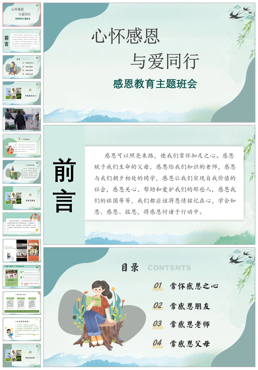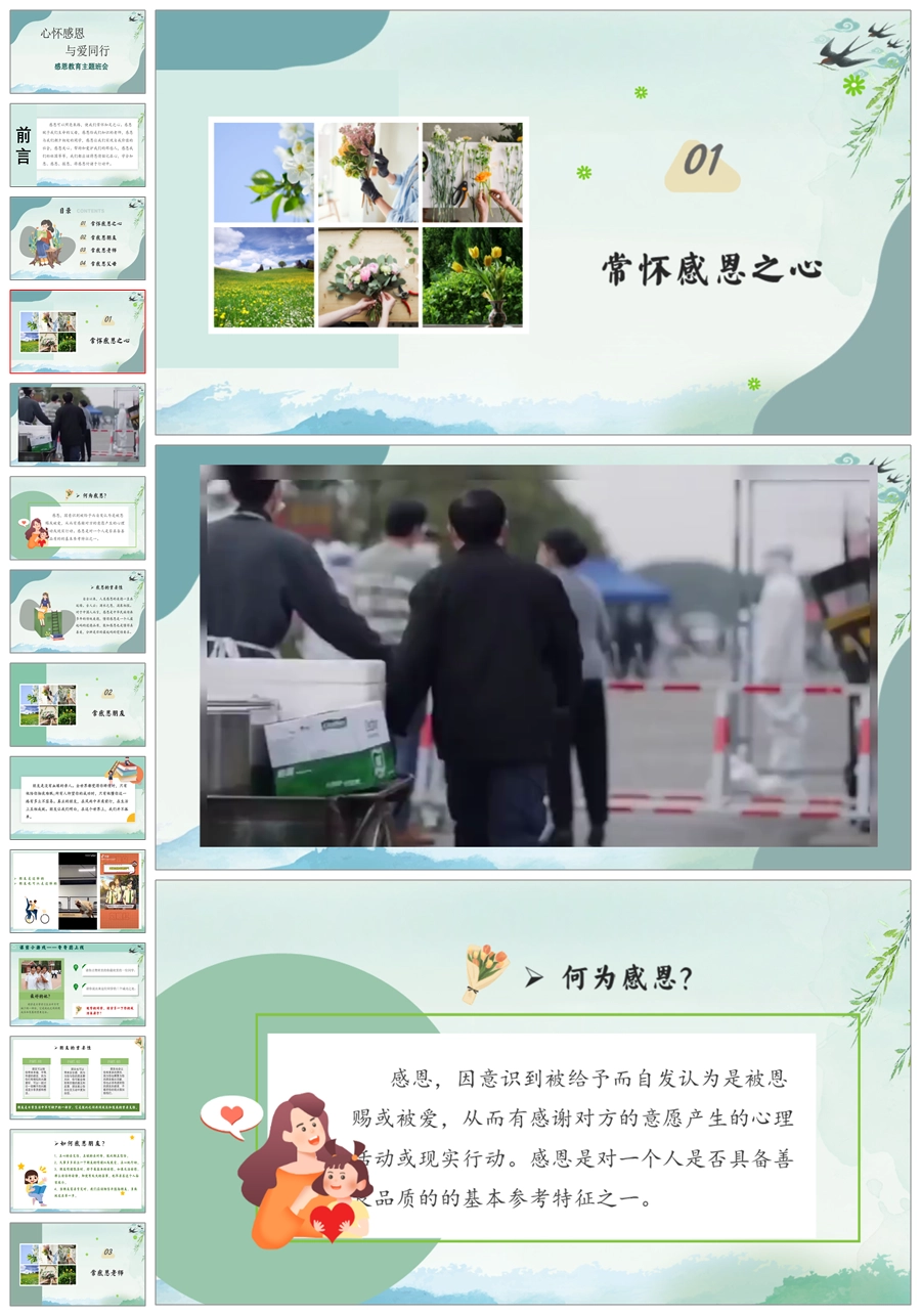 【8102】【感恩教育】《心怀感恩与爱同行》感恩教育主题班会课件PPT(课件+视频)